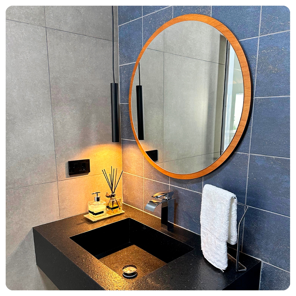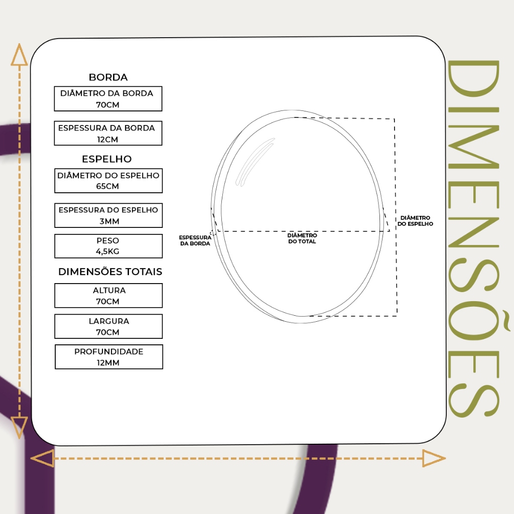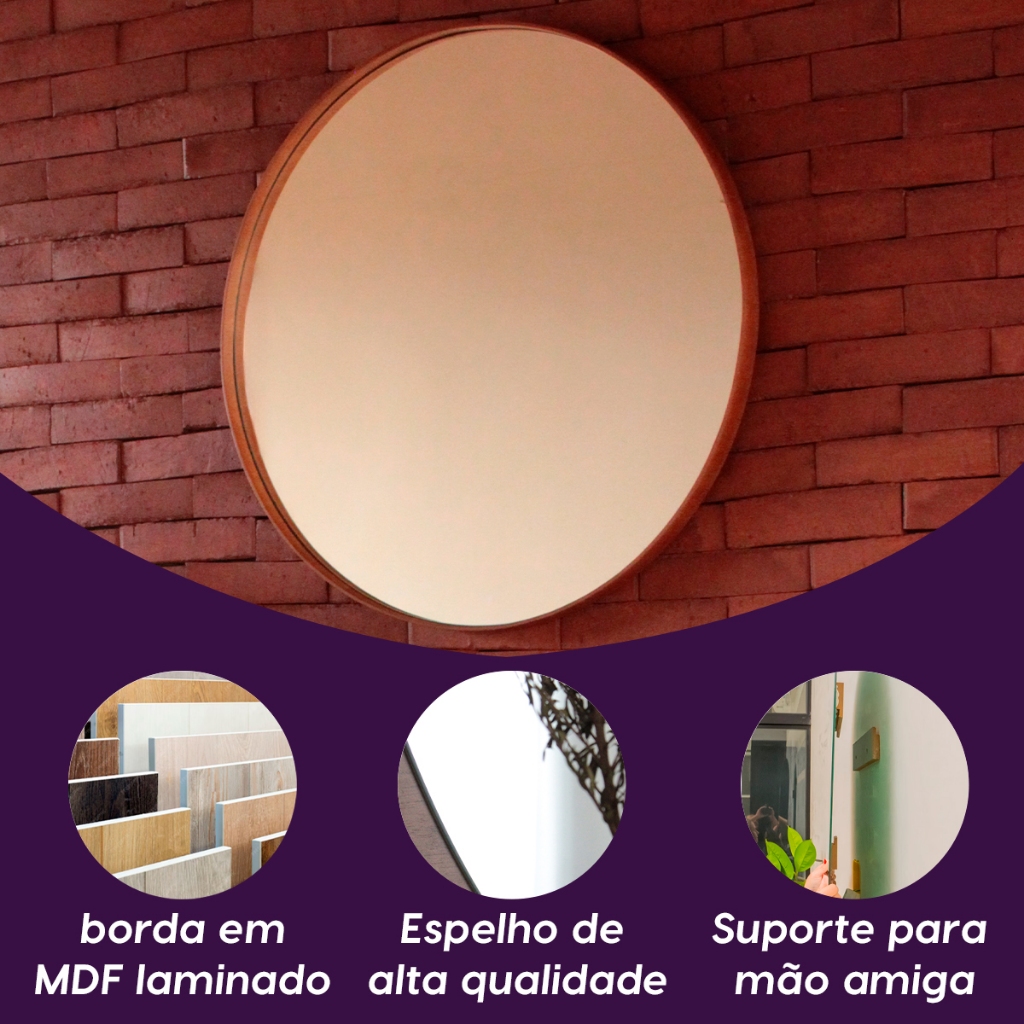 Espelho Redondo Laminado Minimalista 70 cm + Kit de Instalação