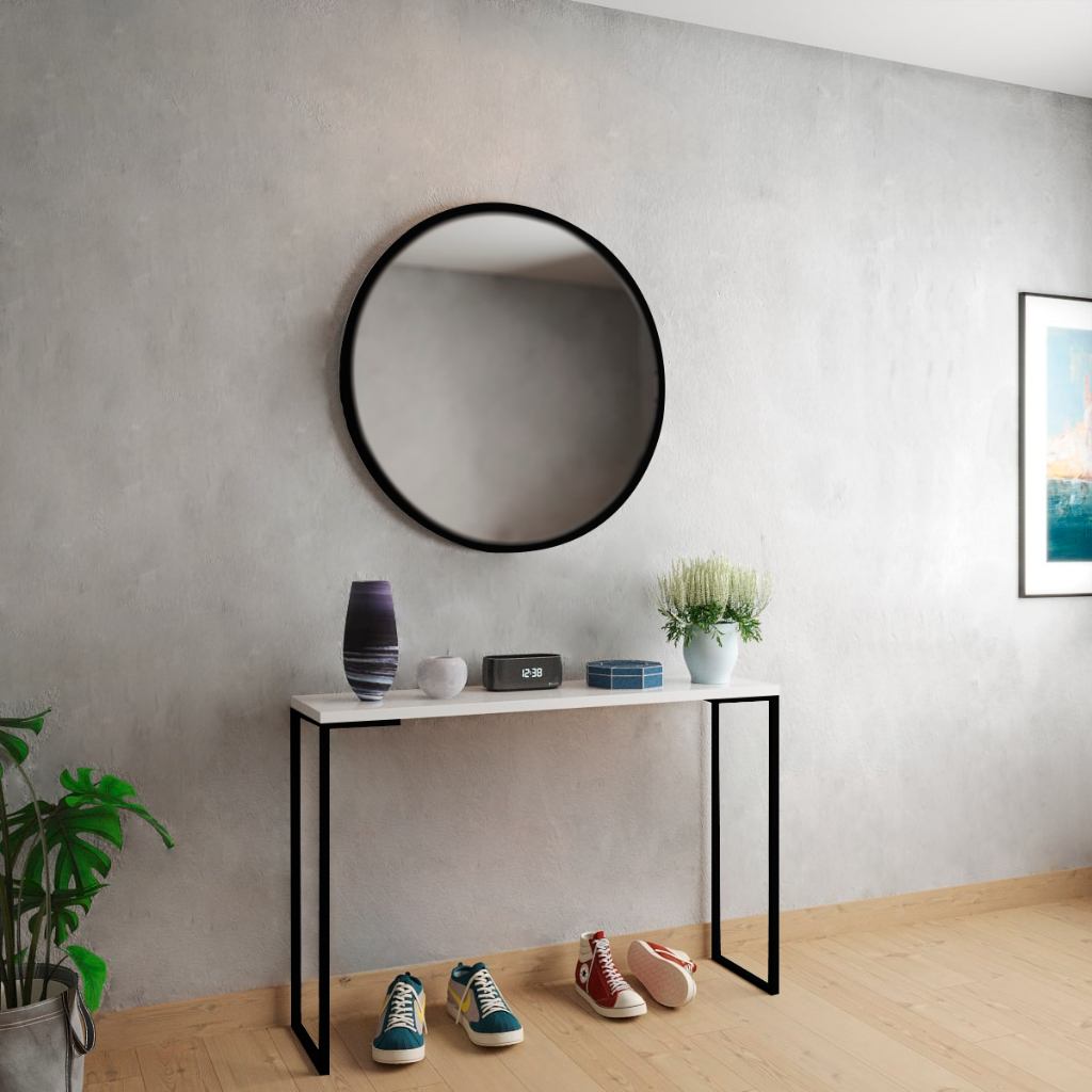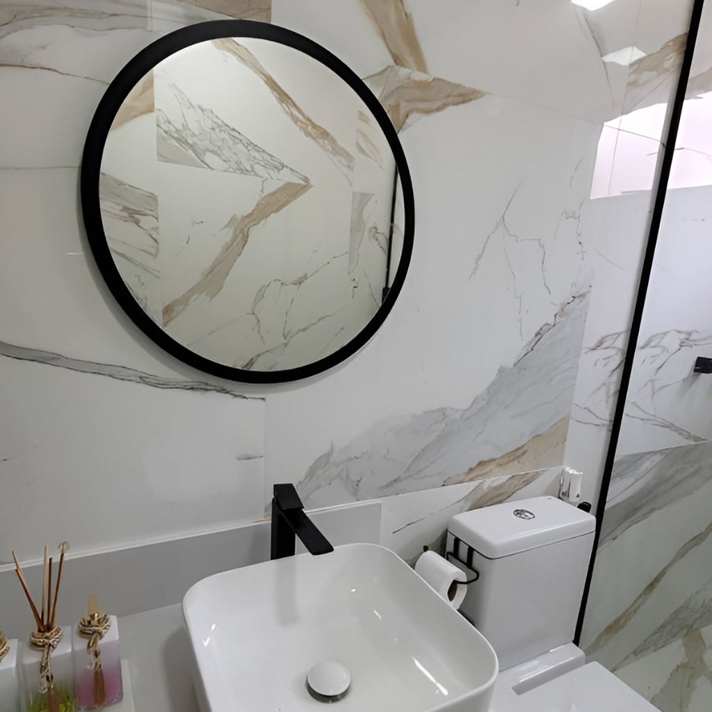 Espelho Redondo Laqueado Minimalista 50 cm + Kit de Instalação