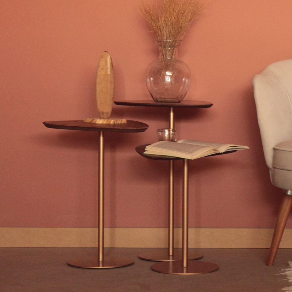 Kit 2 Mesas Laterais Base Aço Inoxidável Afrodite Paleta - 55 e 65cm