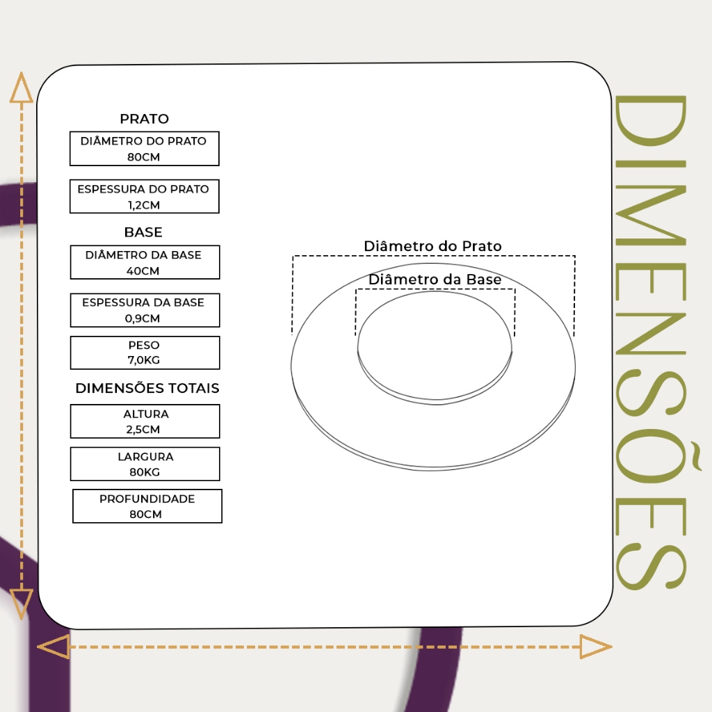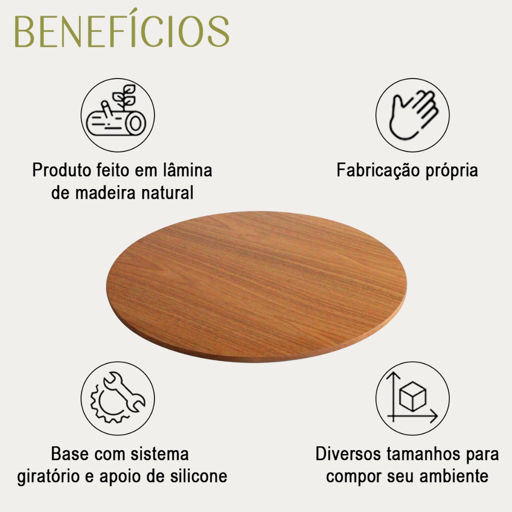 Centro de Mesa Prato giratório laminado para servir na mesa 80 cm