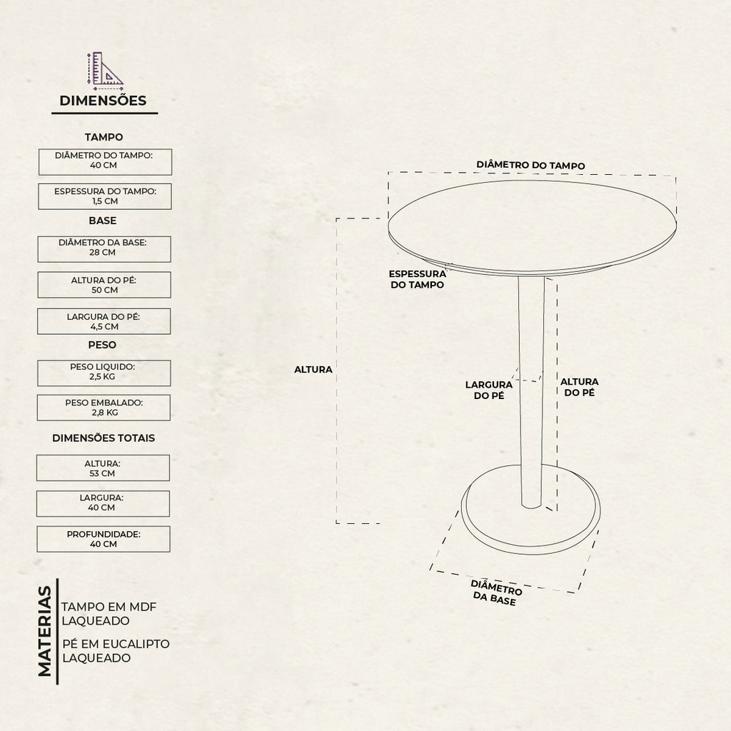 Mesa Lateral Monopé de laqueado 40 cm/ Altura 51 cm