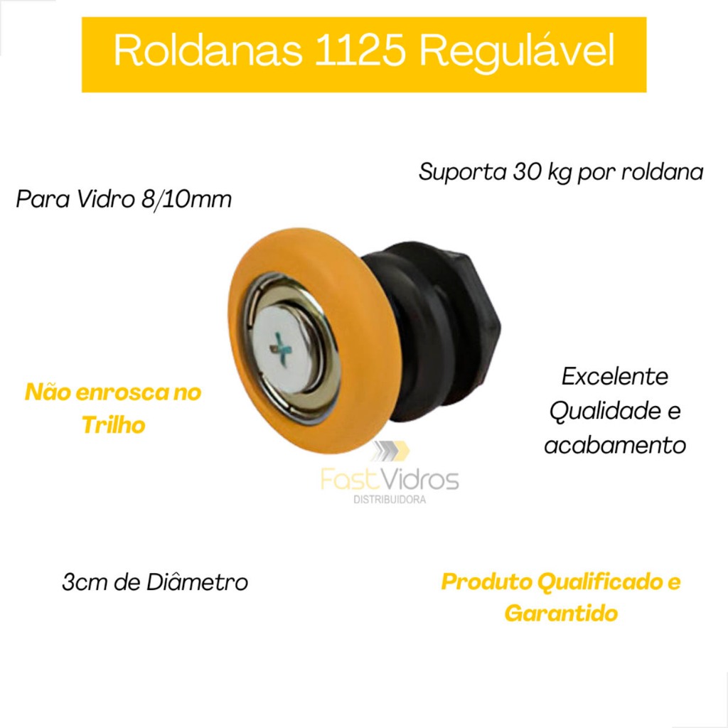 Roldana Excêntrica 1125 Amarela Regulável Para Porta De Vidro Box 8/10mm Kit Com 100