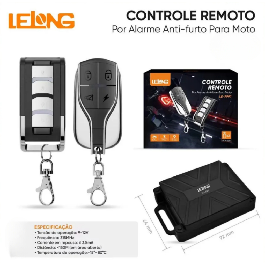 Kit Com 2 Controles Remotos Alarme Ignição Antifurto Para Moto