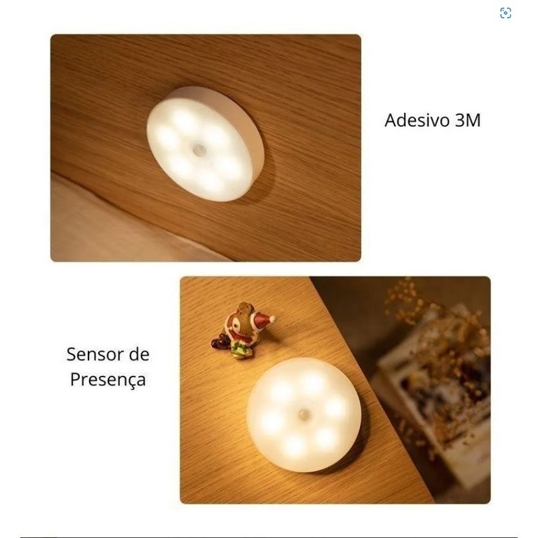Kit 3/4/6 Luminárias Lâmpada Led Recarregável Sensor De Presença