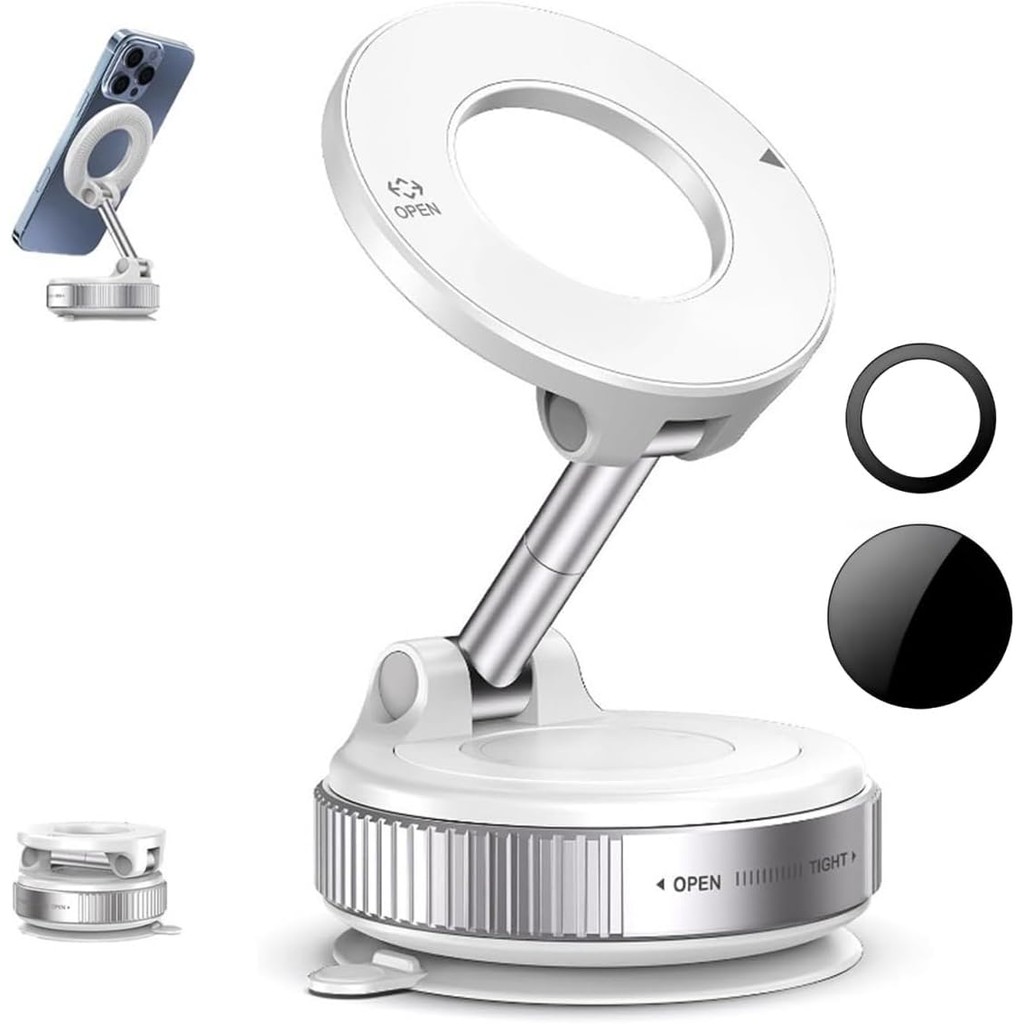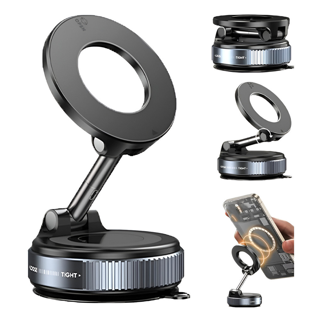 Suporte Magnético 360° Dupla Face p/ Celular – Fixação Forte a Vácuo p/ Carro, Mesa e Parede