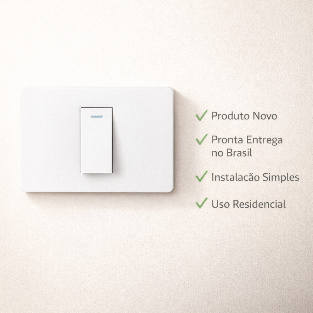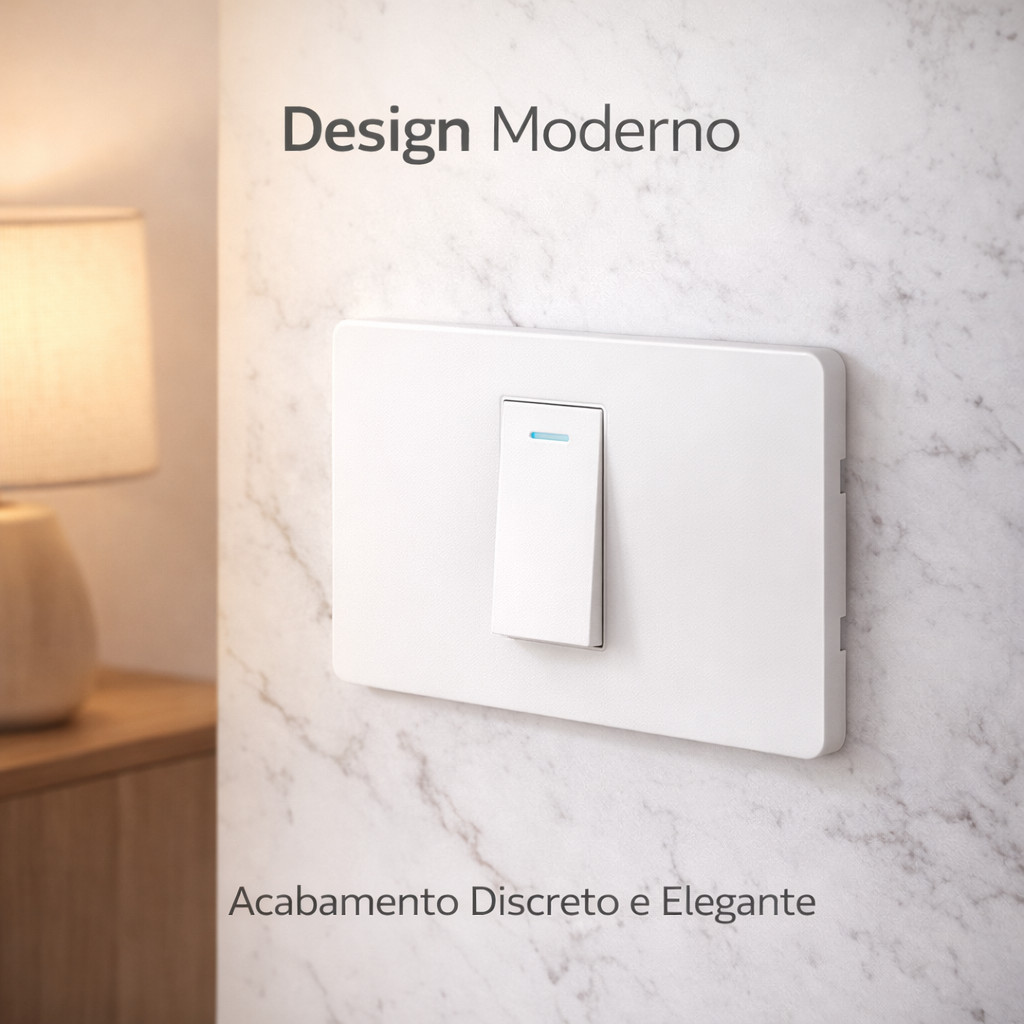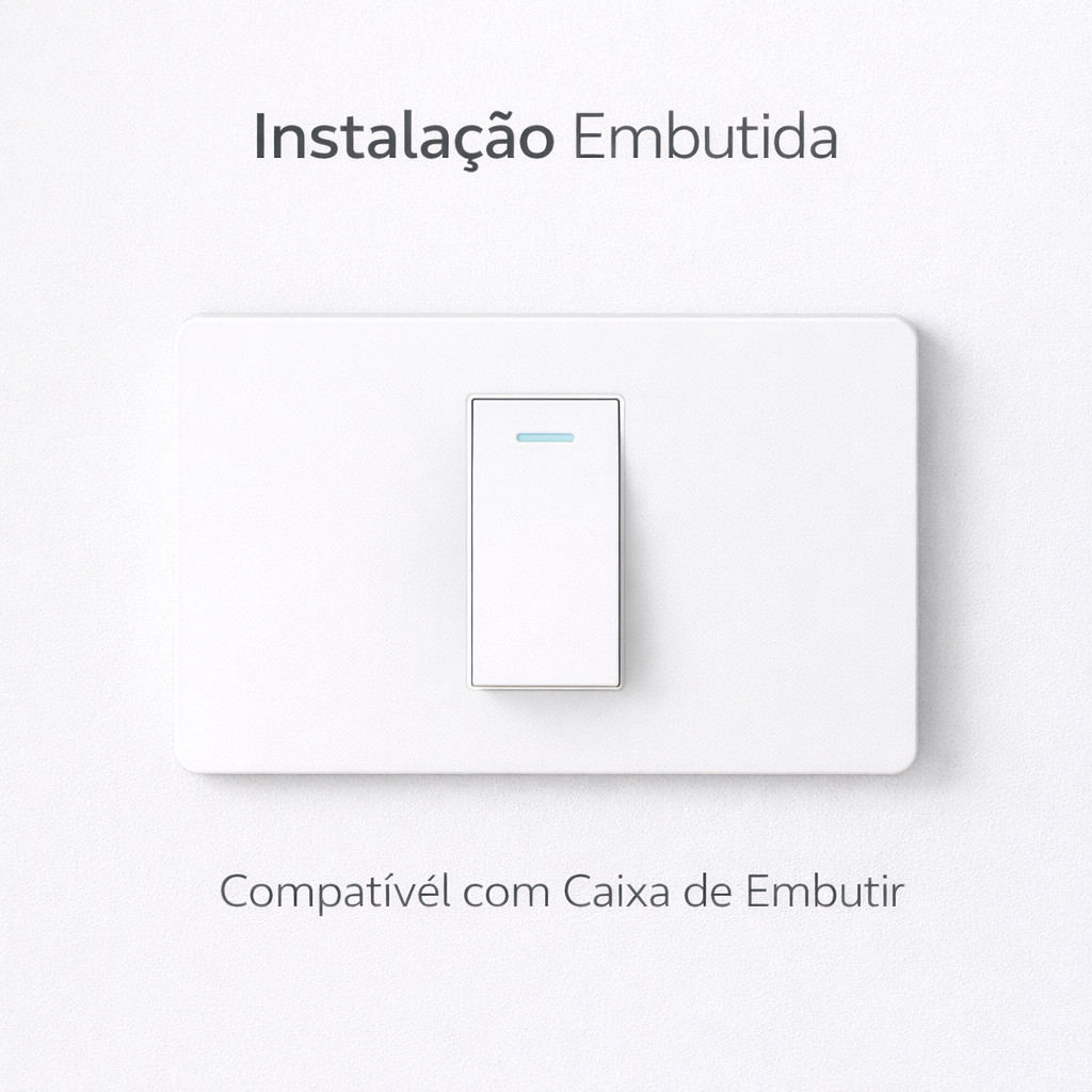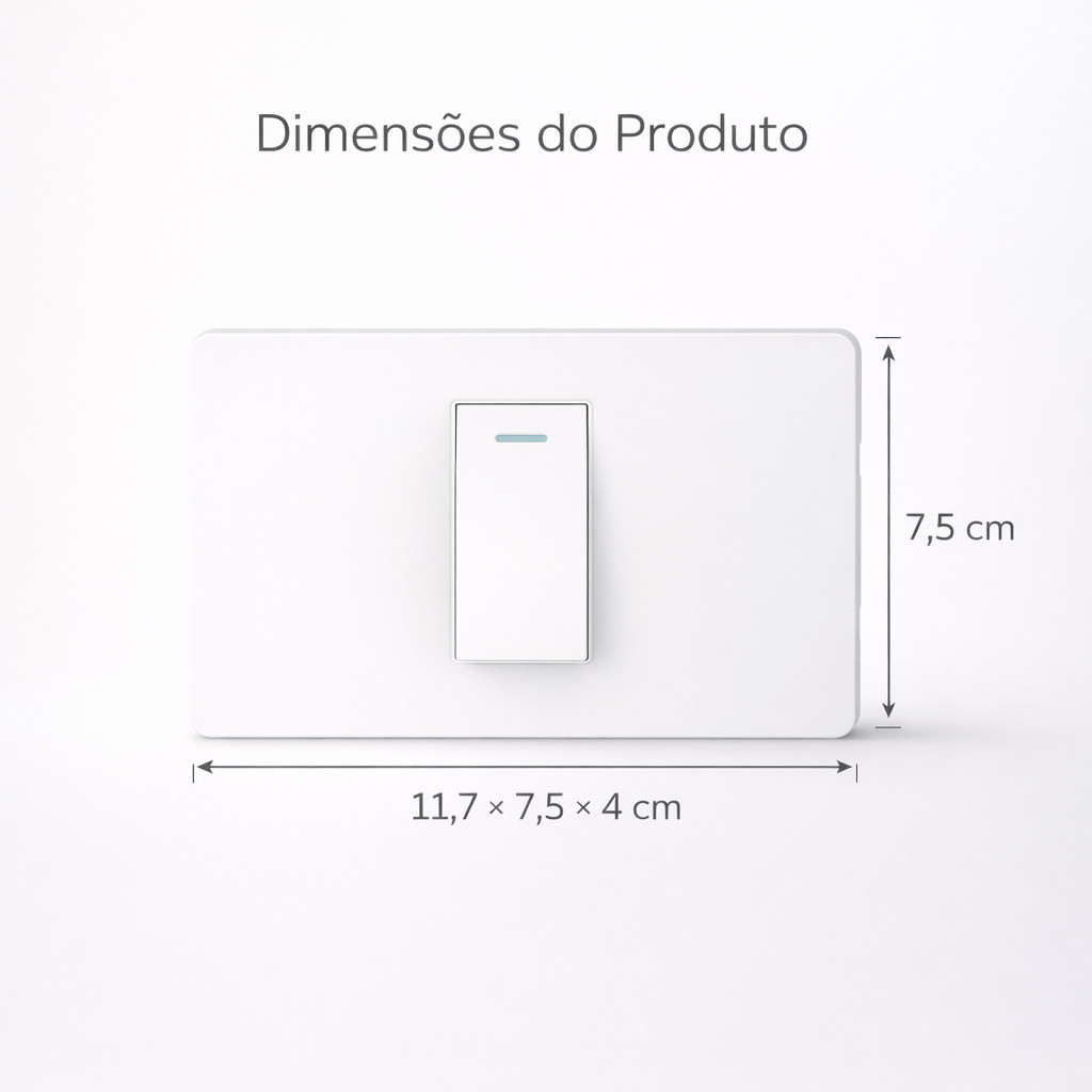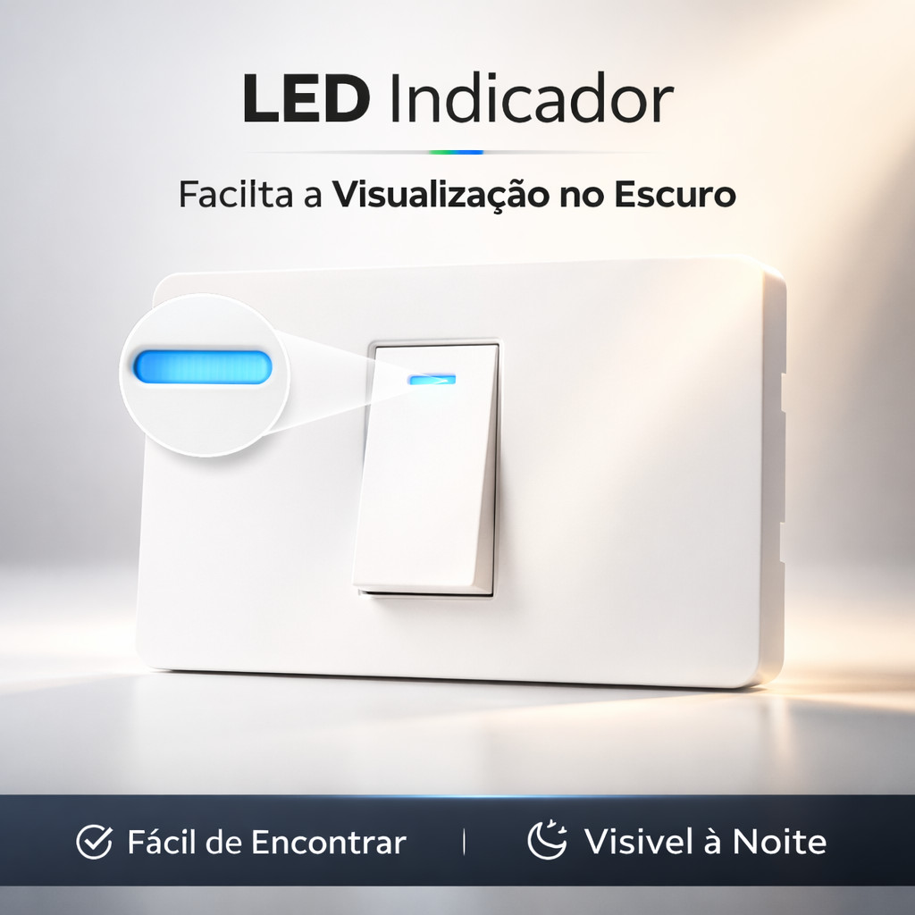 Interruptor de Parede 1 Tecla com LED Luz Indicadora Painel PC Anti-Chama Tomada Embutir Branco 11.7cm x 7.5cm