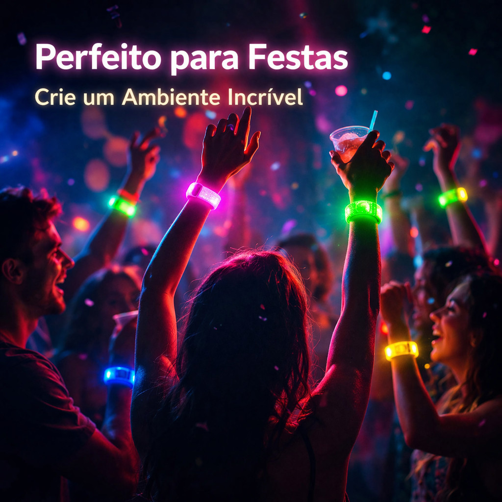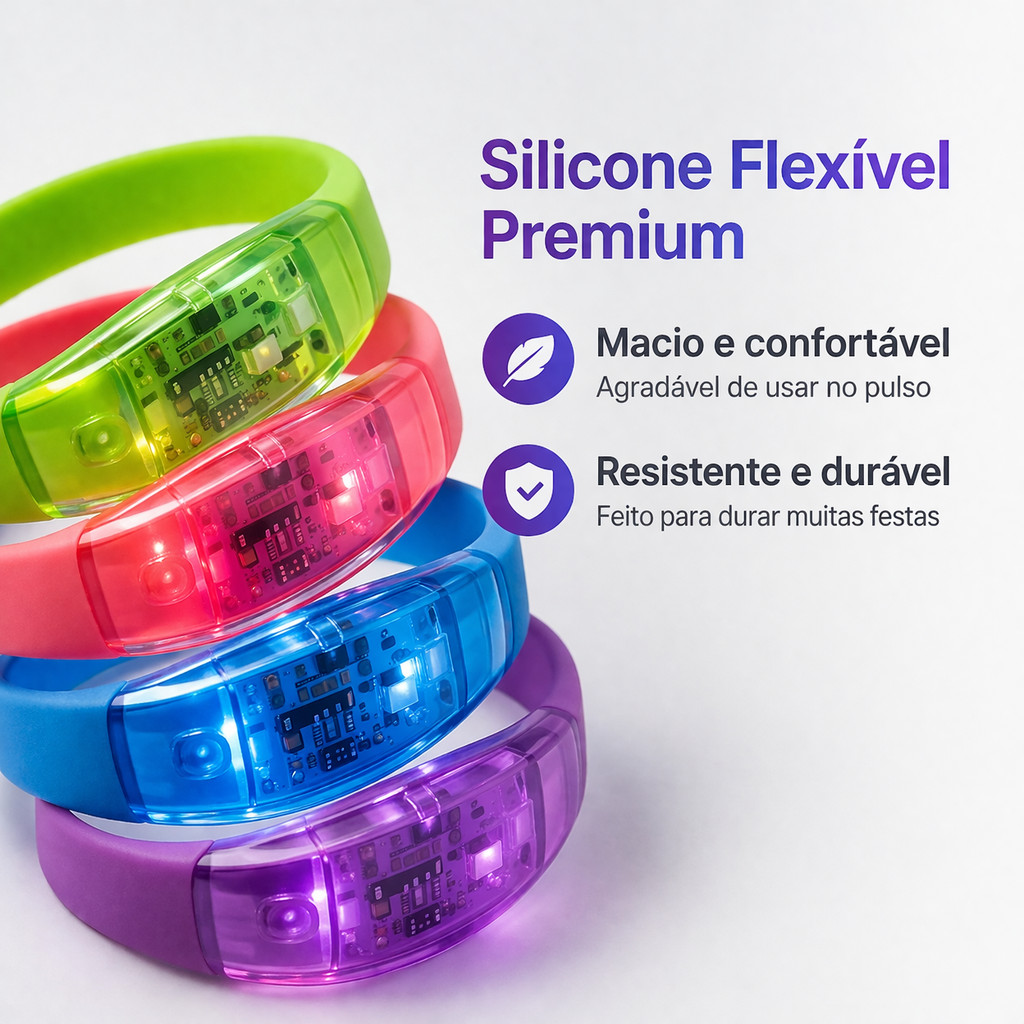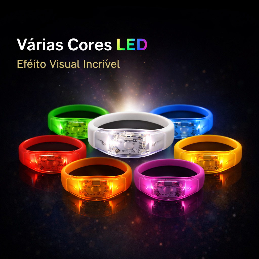 Kit Pulseira LED Som Reativo RGB Várias Cores Festa Show Casamento 10 20 30 50 Unidades