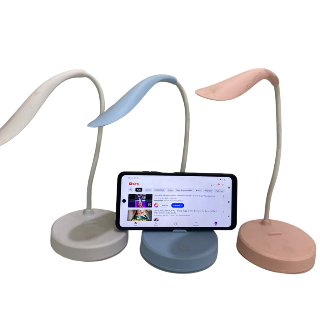 Luminária Mini de Mesa Flexível Sem Fio Led Leve Dobrável Portátil Leitura Com Suporte para Celular