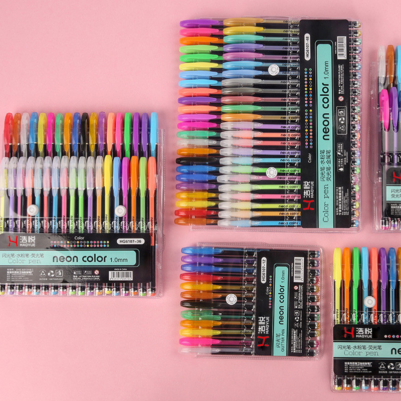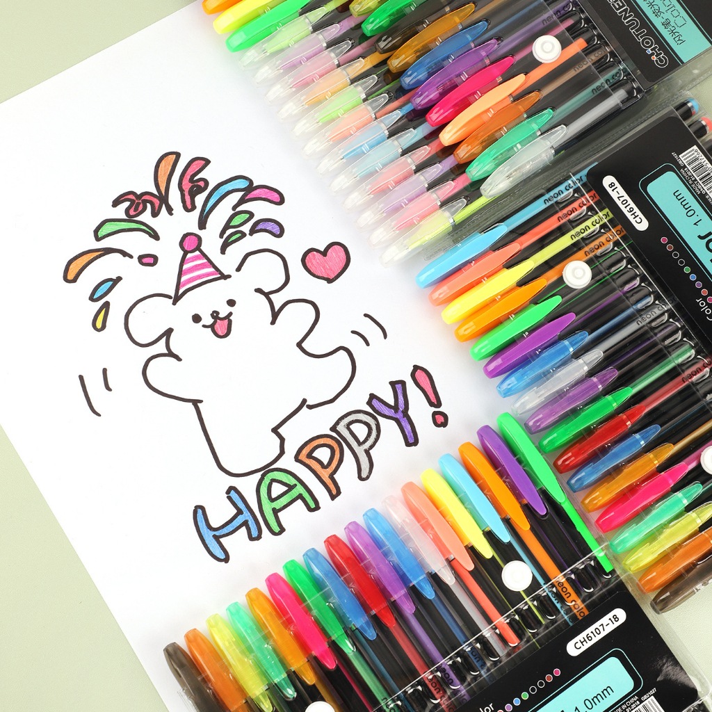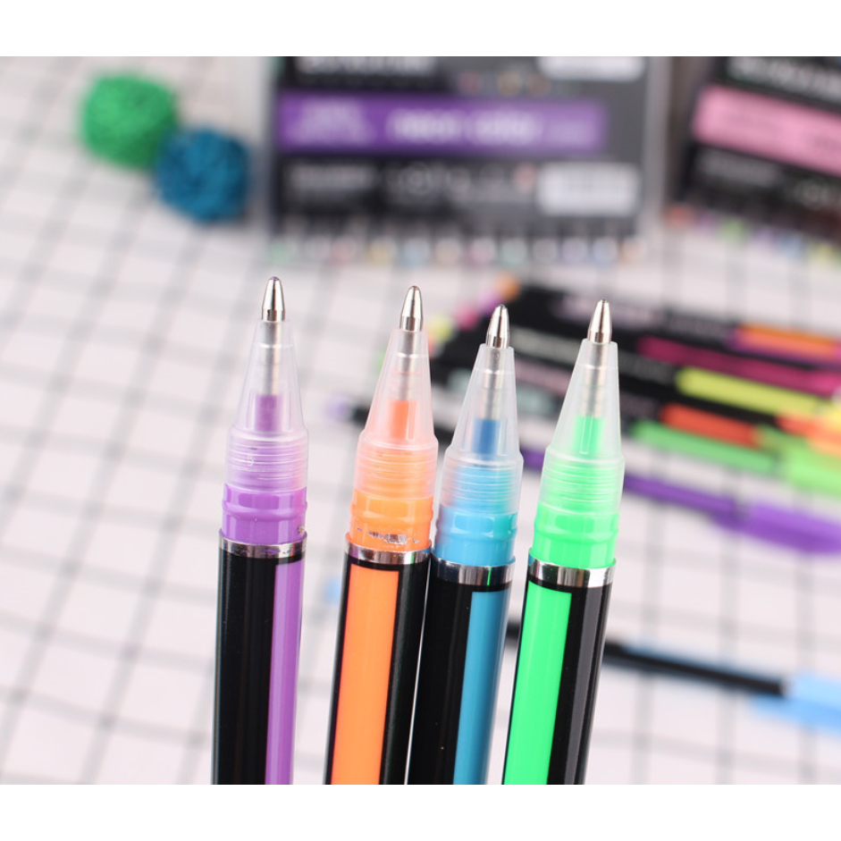 Kit com 24 Cores Caneta 1.00 mm Gel ColorGel Tinta Glitter Pastel Neon Metal Escolar
