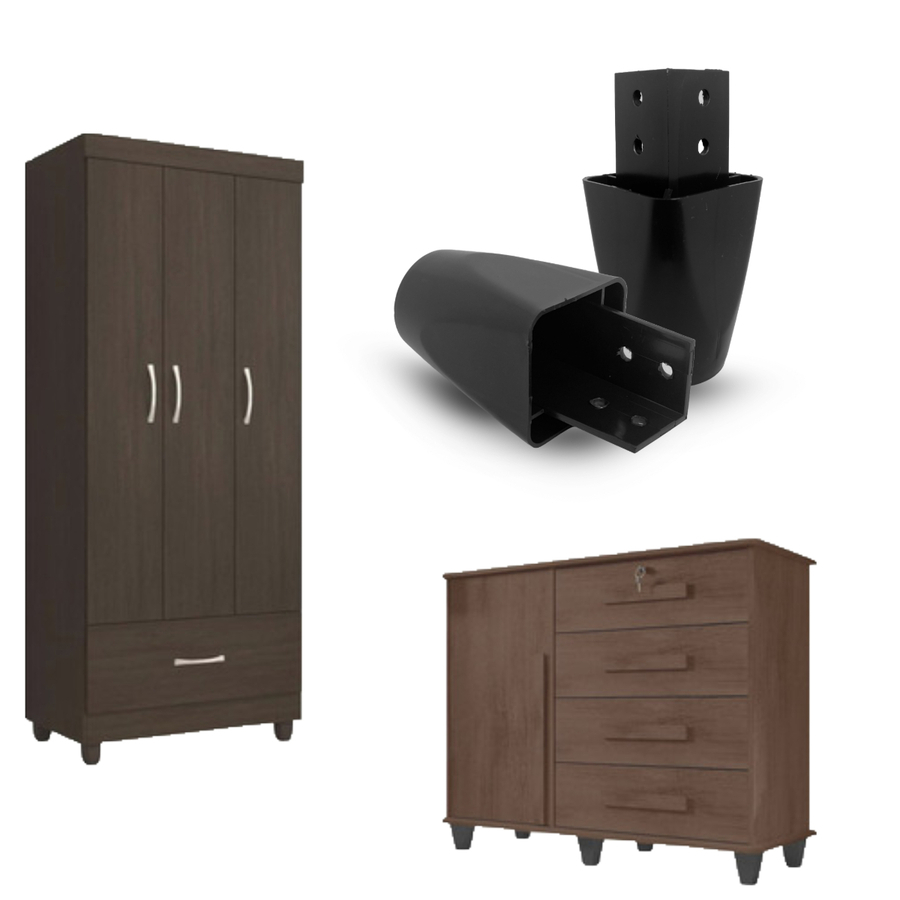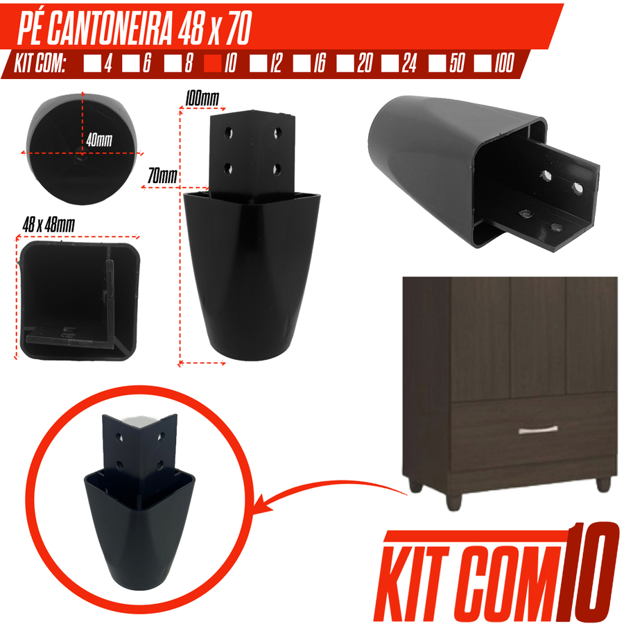 Pé Redondo Canto Para Móveis Guarda Roupas Roupeiro Armário Resistente Cor Preta Kit 6/8/10/20