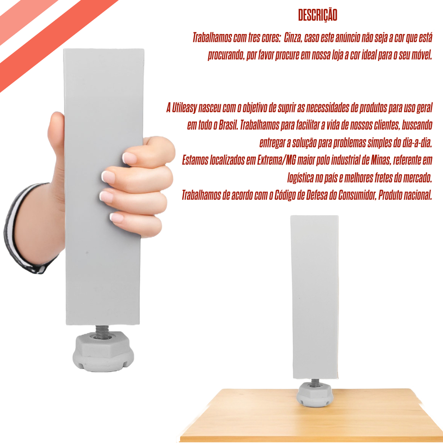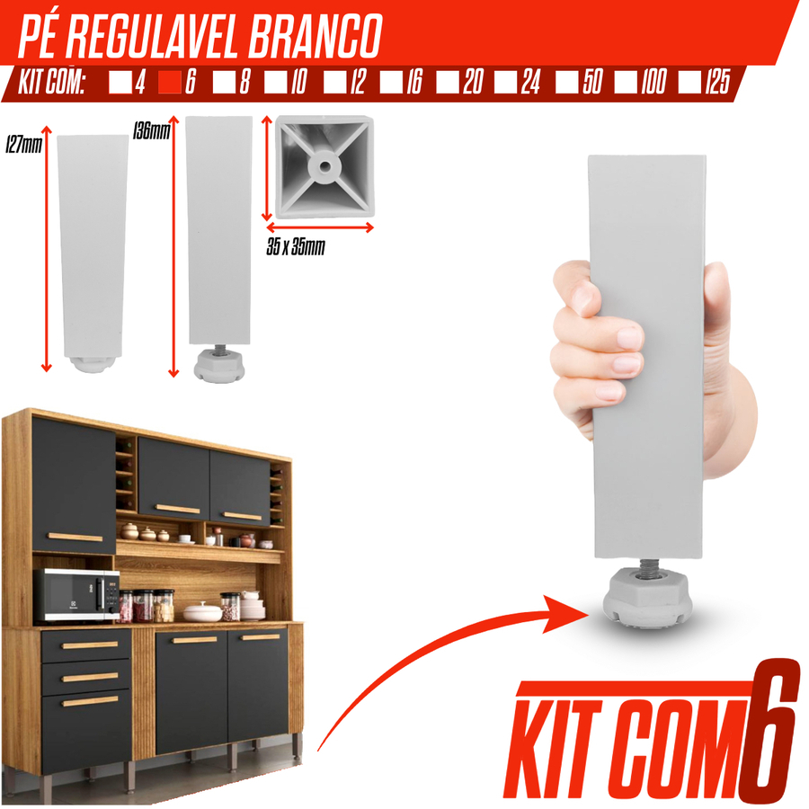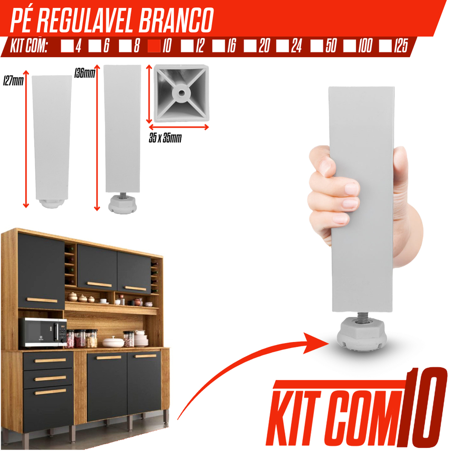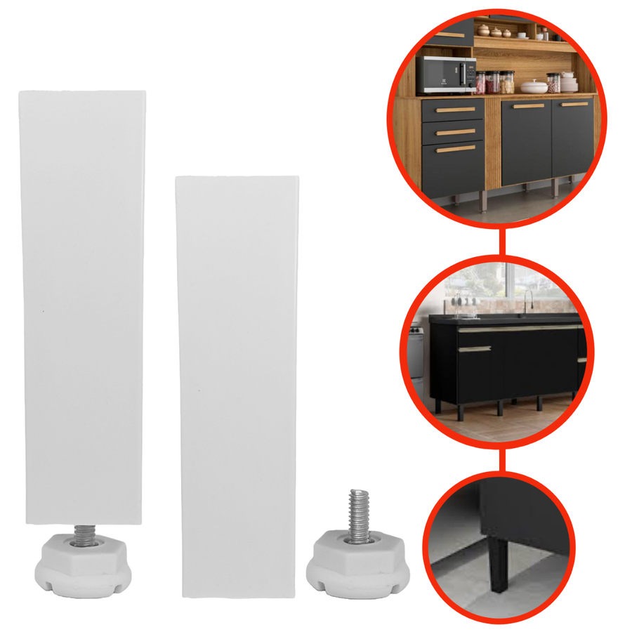 Kit 4/6/8/10/12 Pé Quadrado Branco P/ Armário de Cozinha Gabinete Moveis 130x35x35