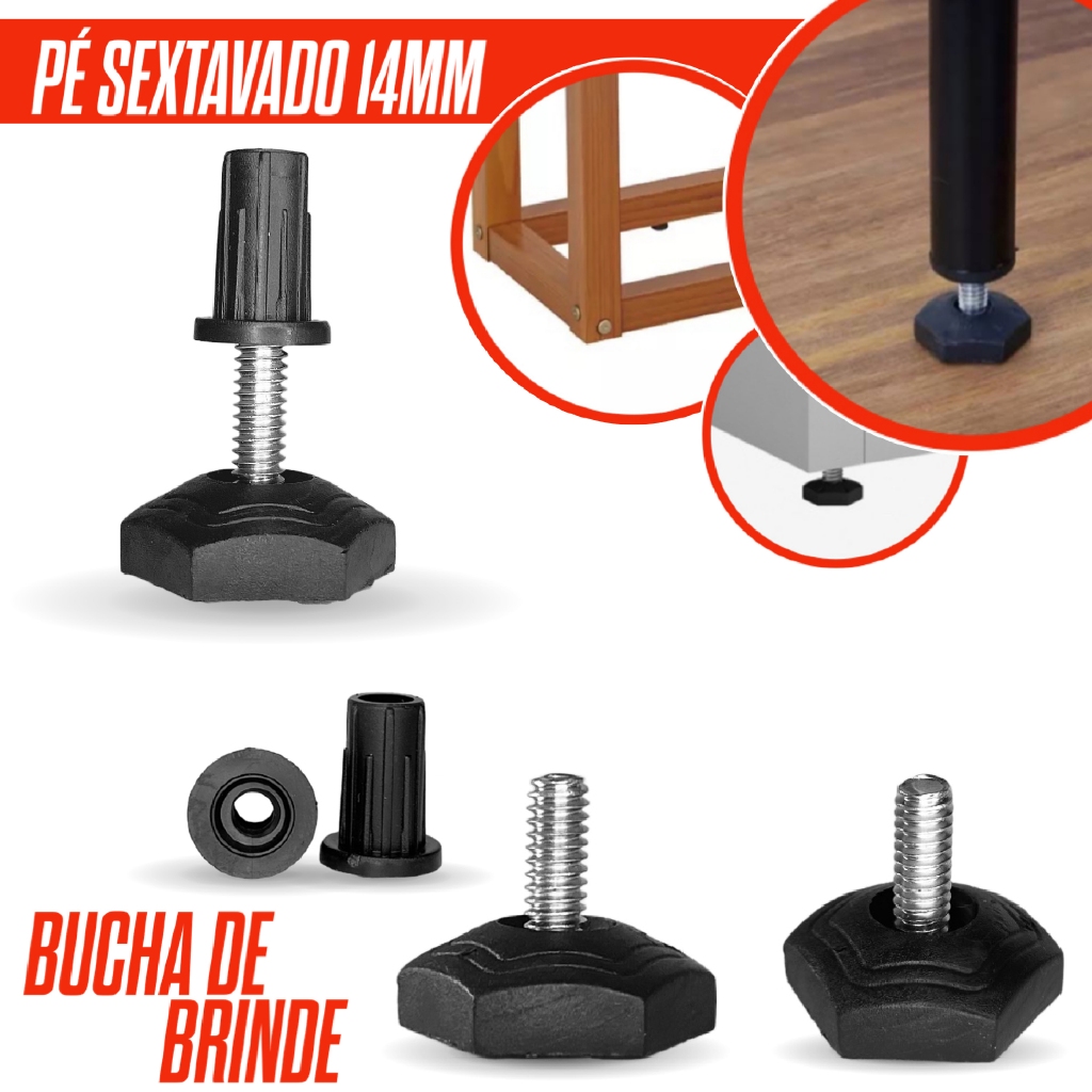 Kit com 20 Peças Sapata Nivelador Sextavado 14mm + Bucha reforçada 10mm de alta qualidade