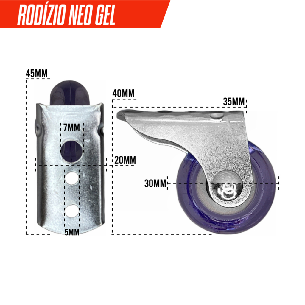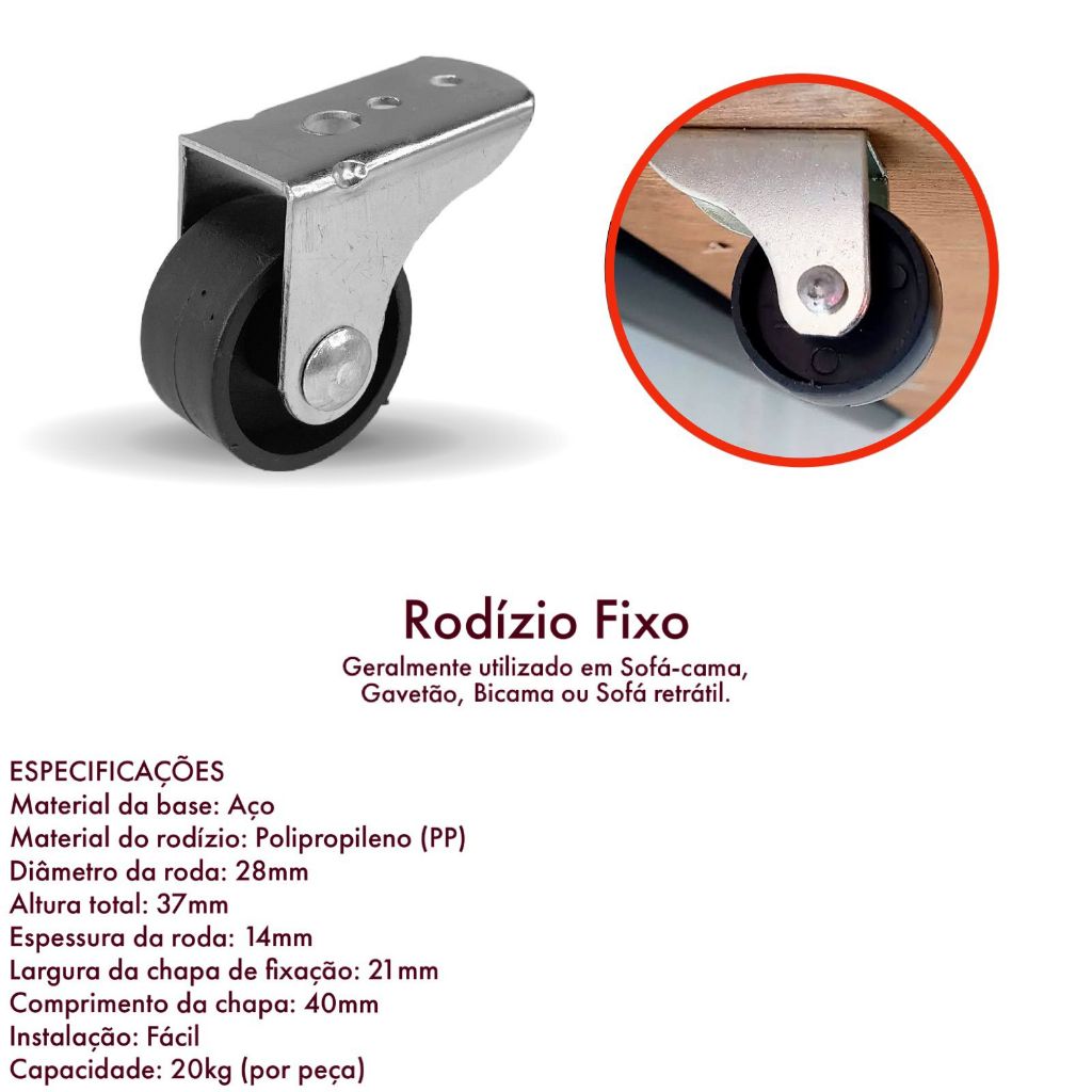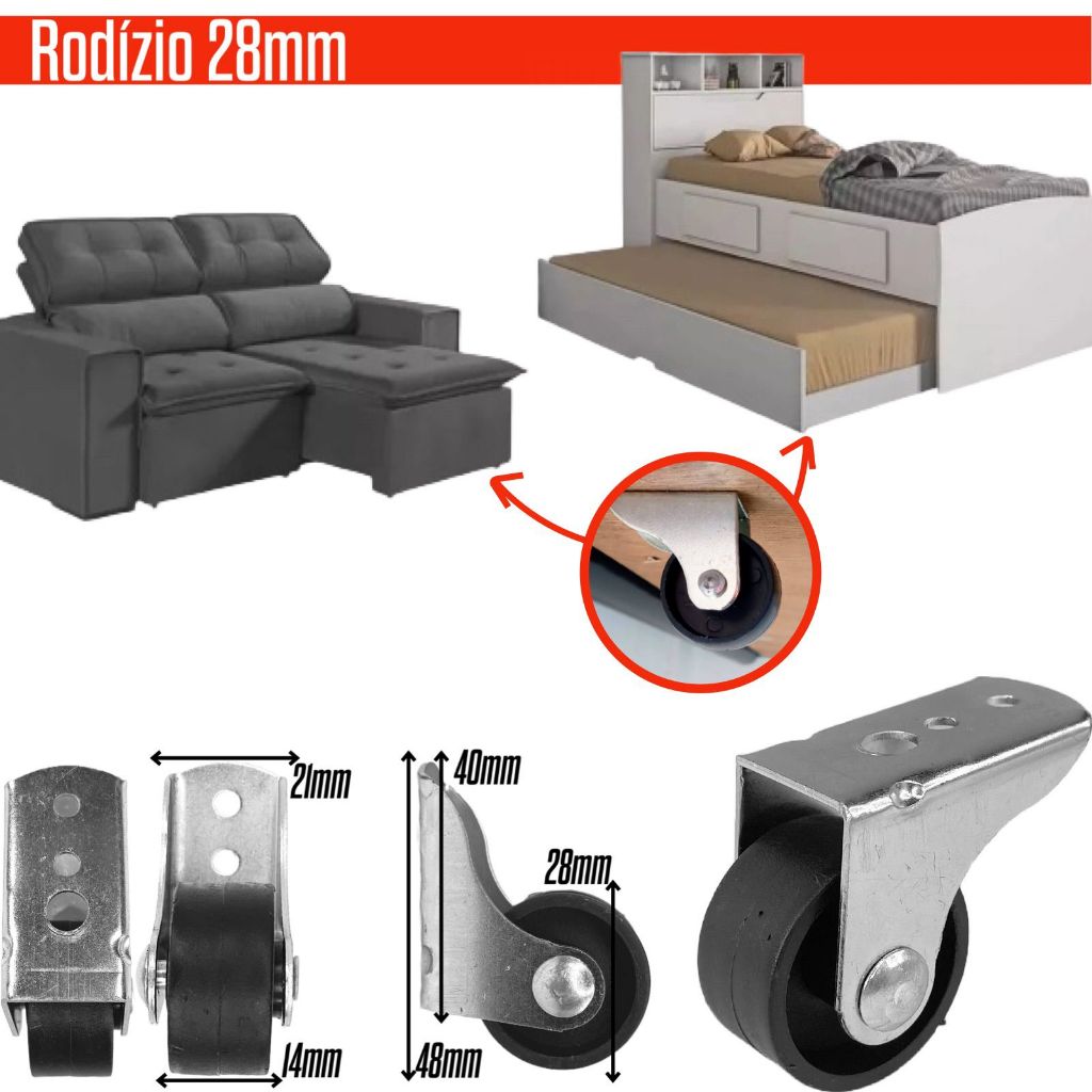 Kit 4 Rodinha Rodizio Fixo Para Sofa Retratil Bicama Auxiliar Gavetão Roda de 30mm Anti Risco