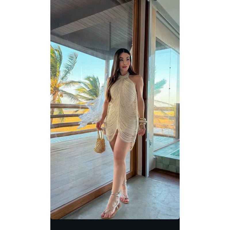 vestido macaquinho elegante com franjas verão 2025