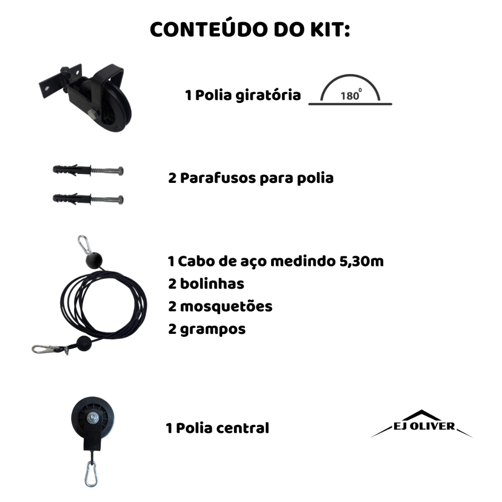 Kit Polia Baixa Cabo Aço Roldana Articulada Mono Cross Over