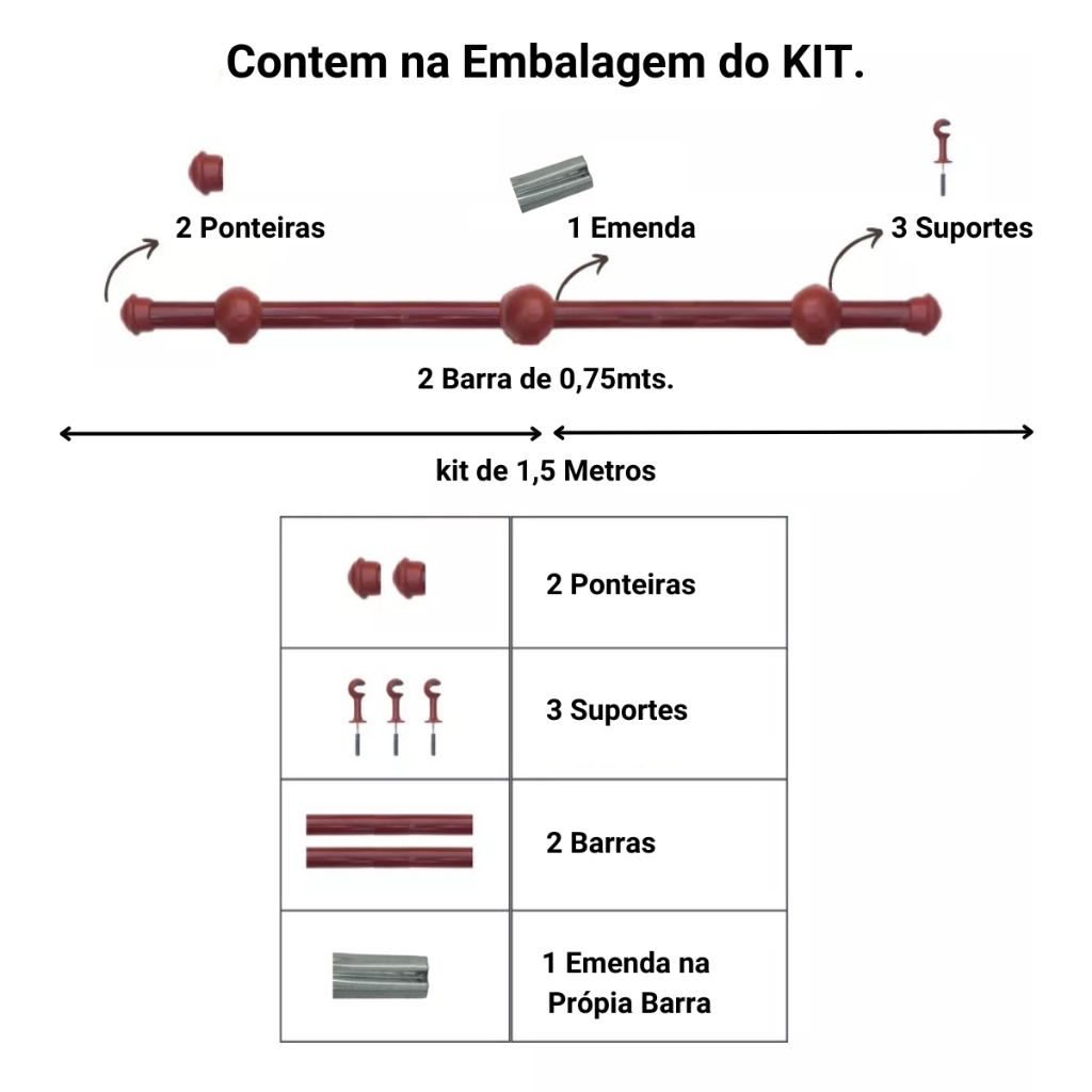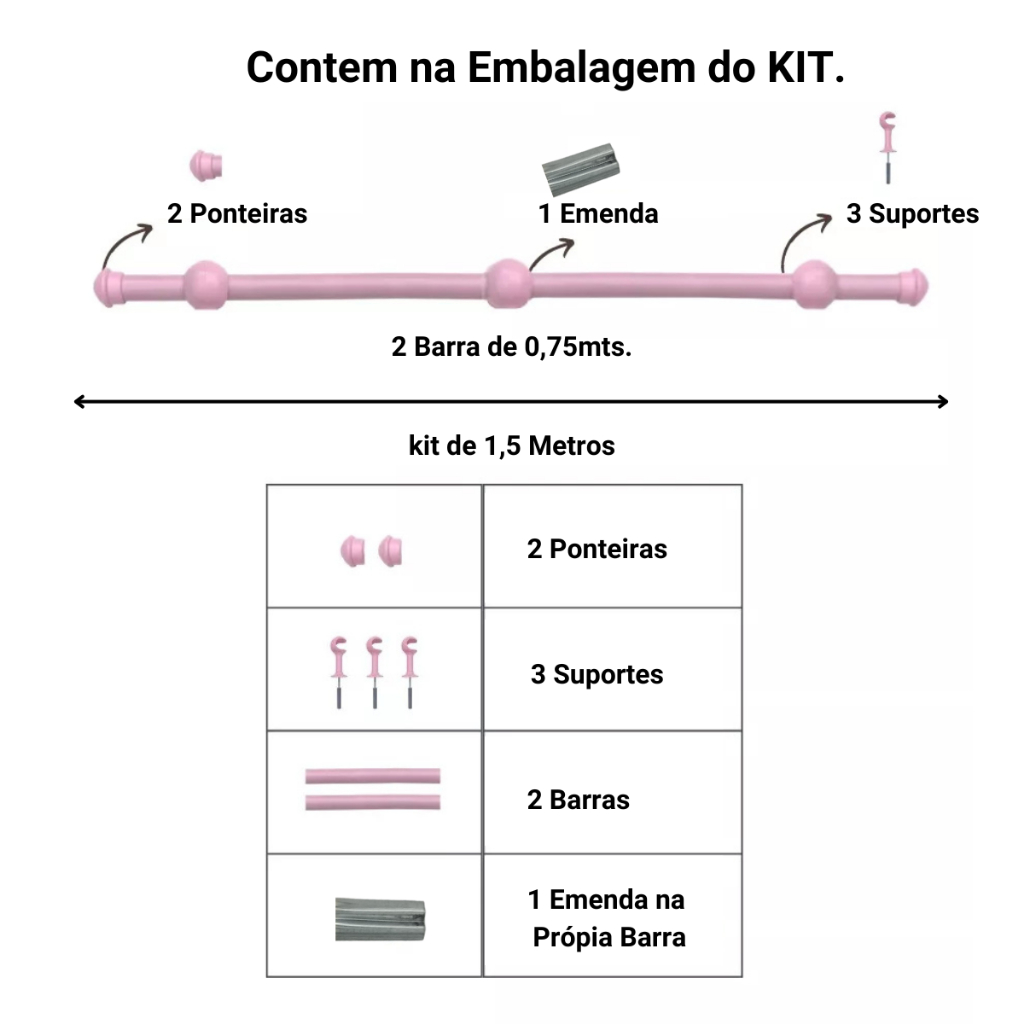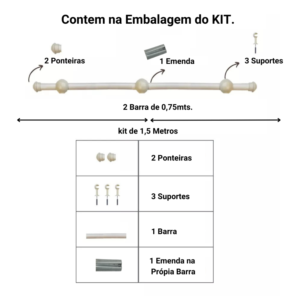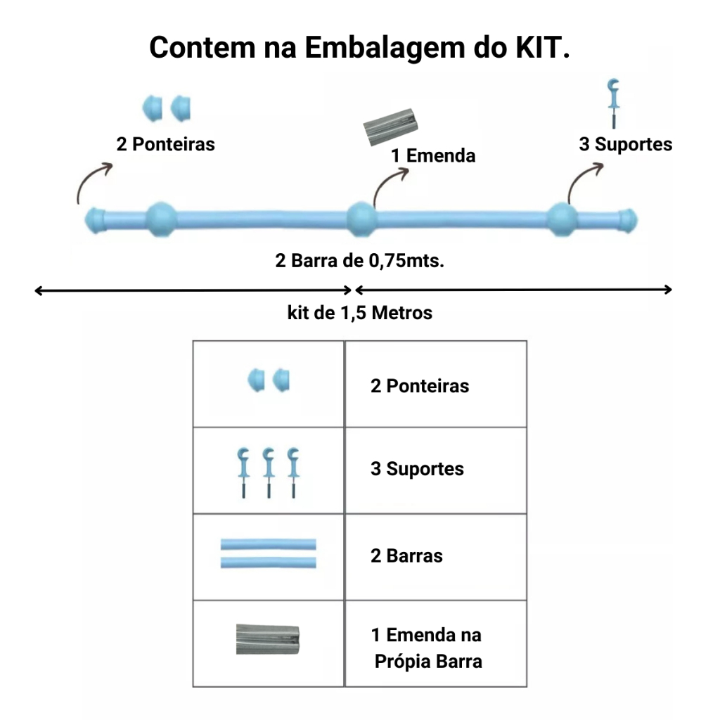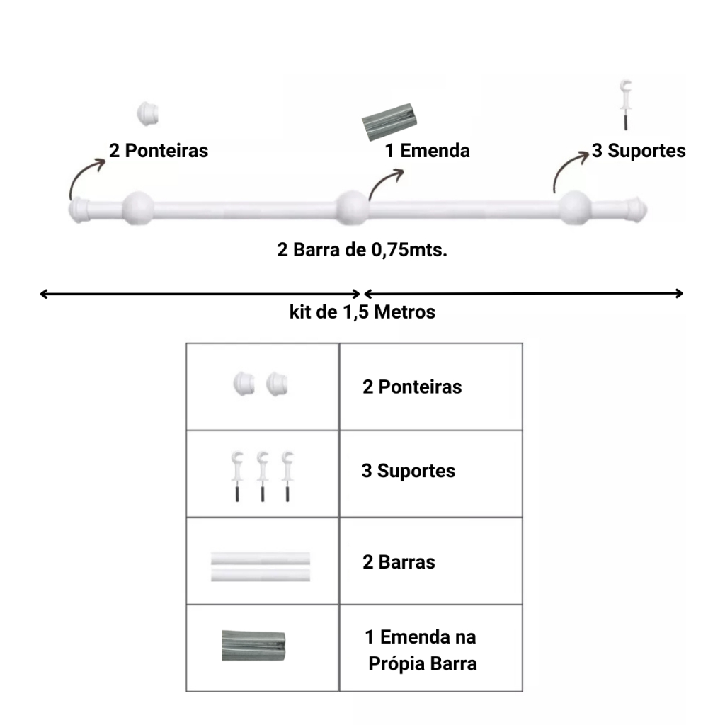 Varão de Cortina de aço 1,50 metros 19mm Várias cores