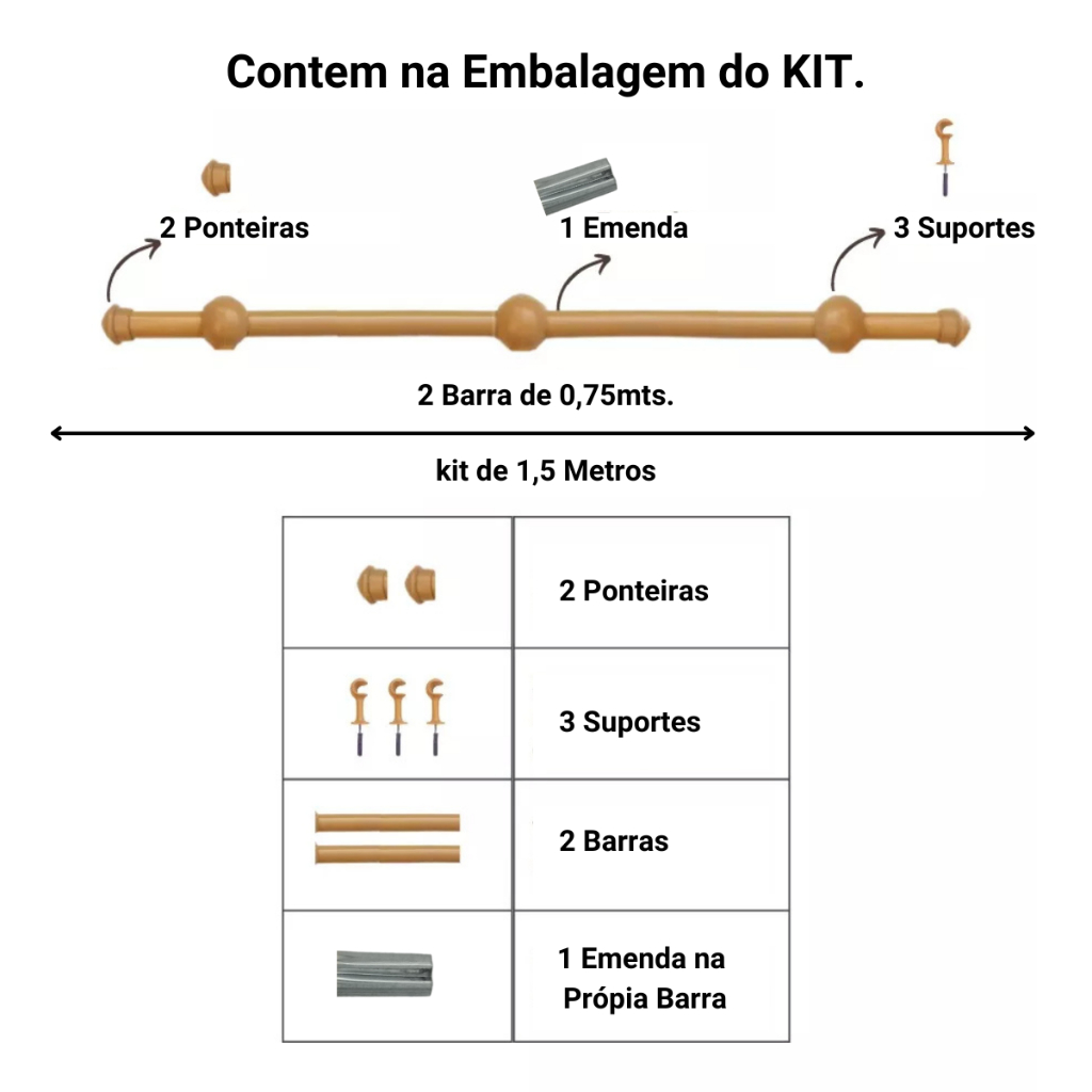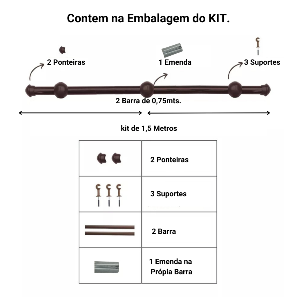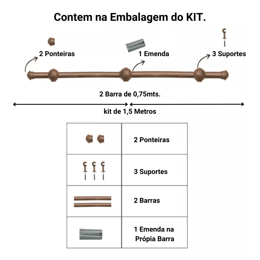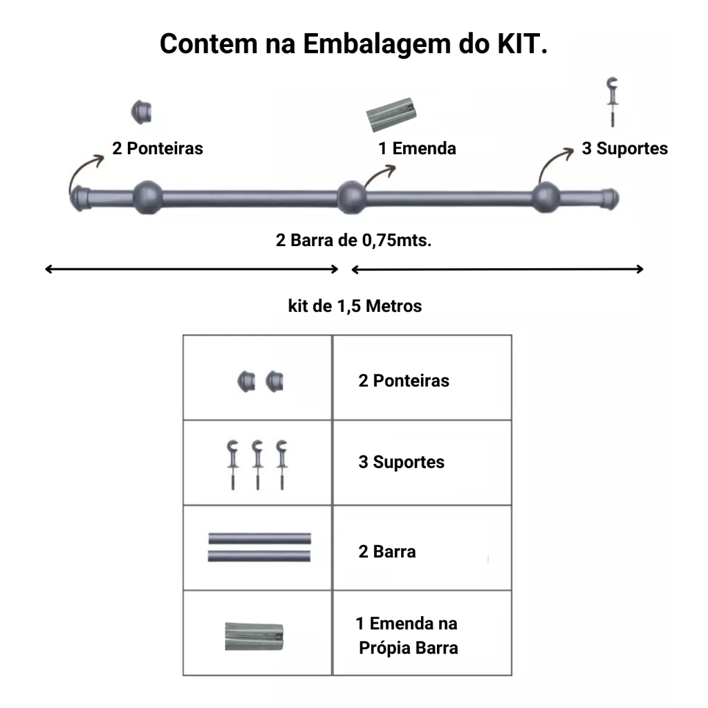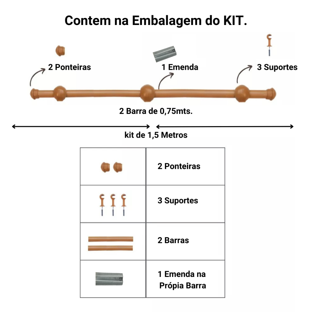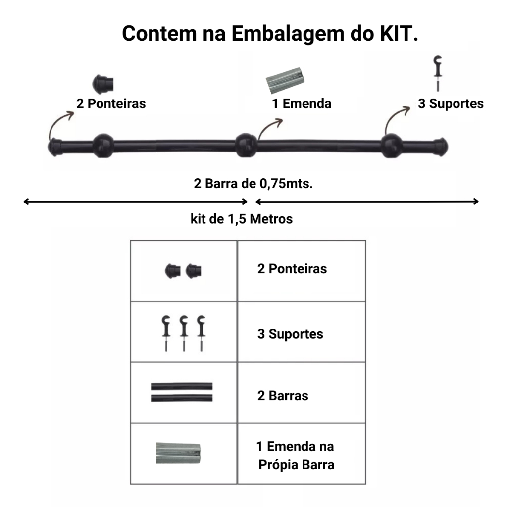 Varão de Cortina de aço 1,50 metros 19mm Várias cores