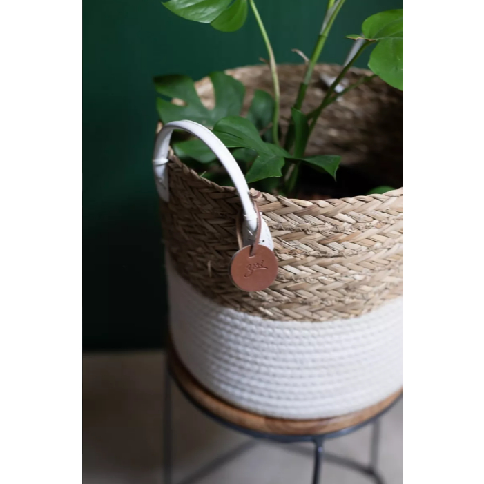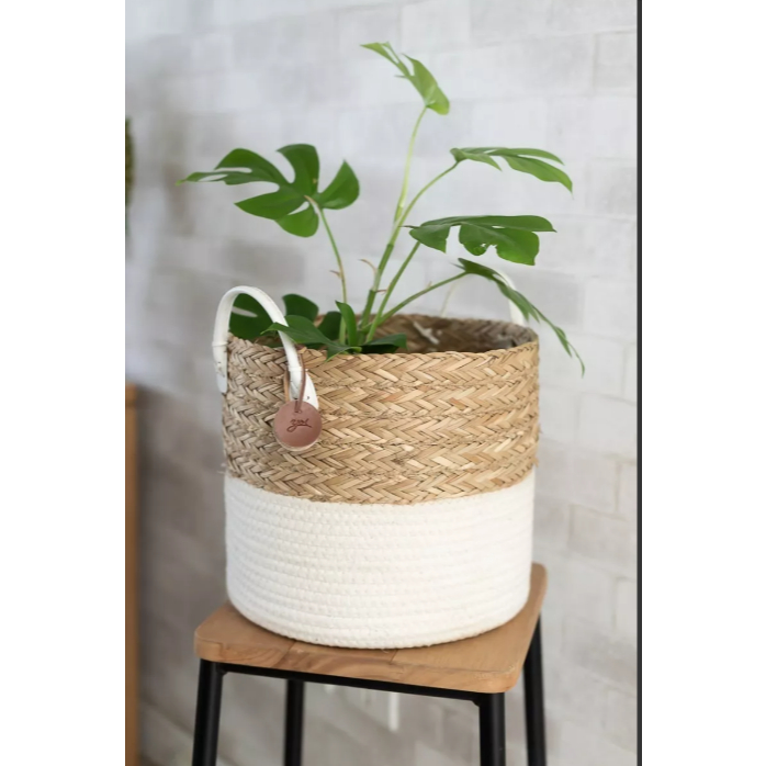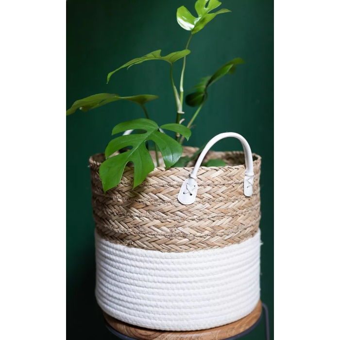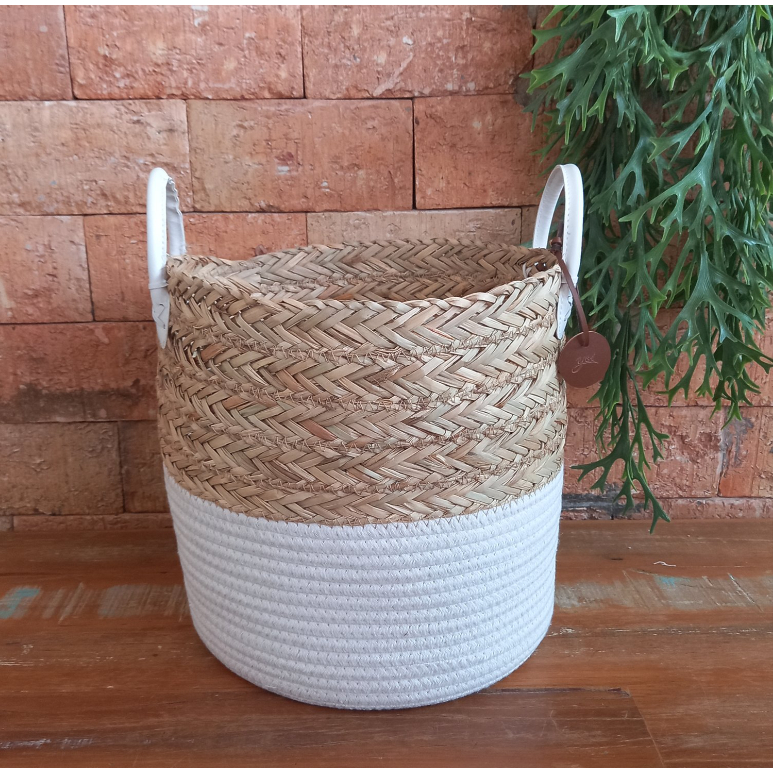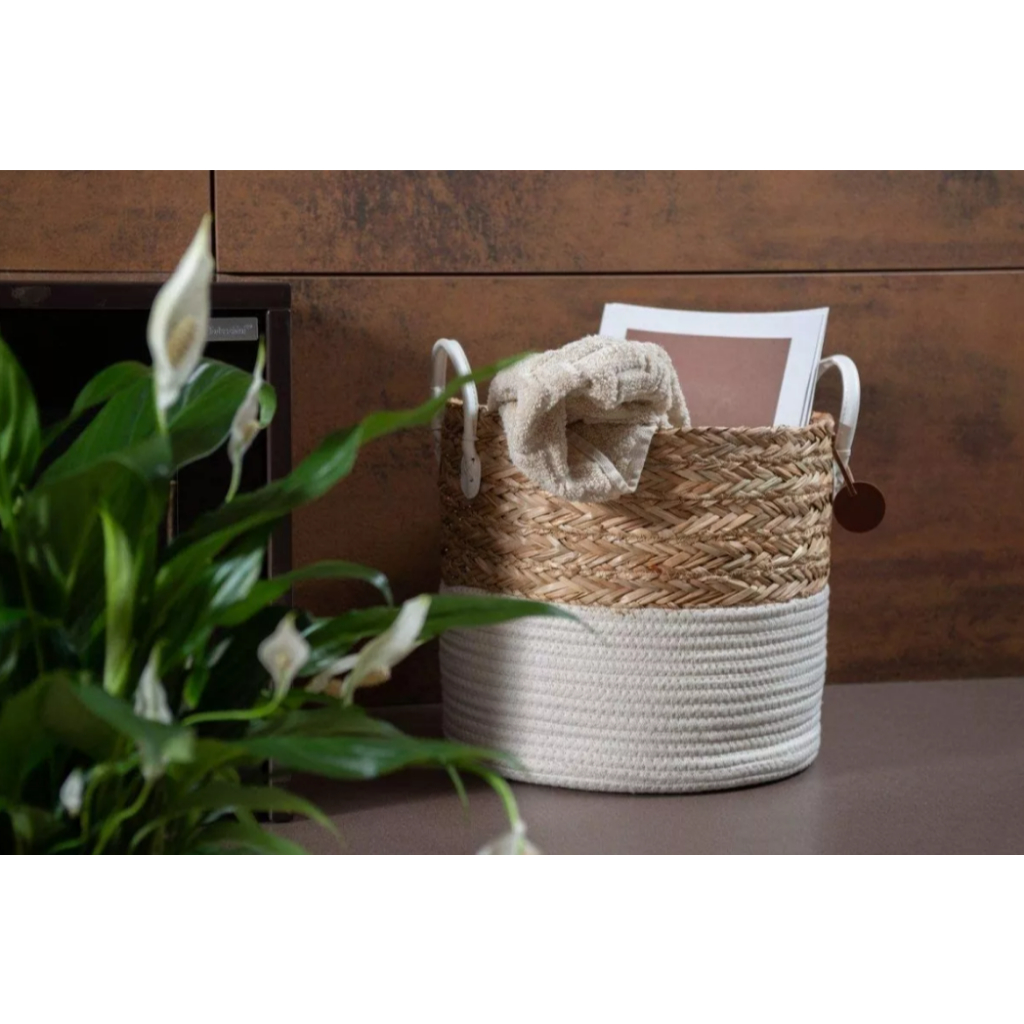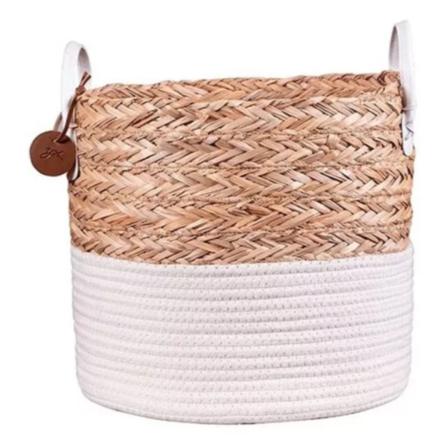 Cesto Organizador De Corda Seagrass Com Algodão 27x23cm Yoi Cor Nude