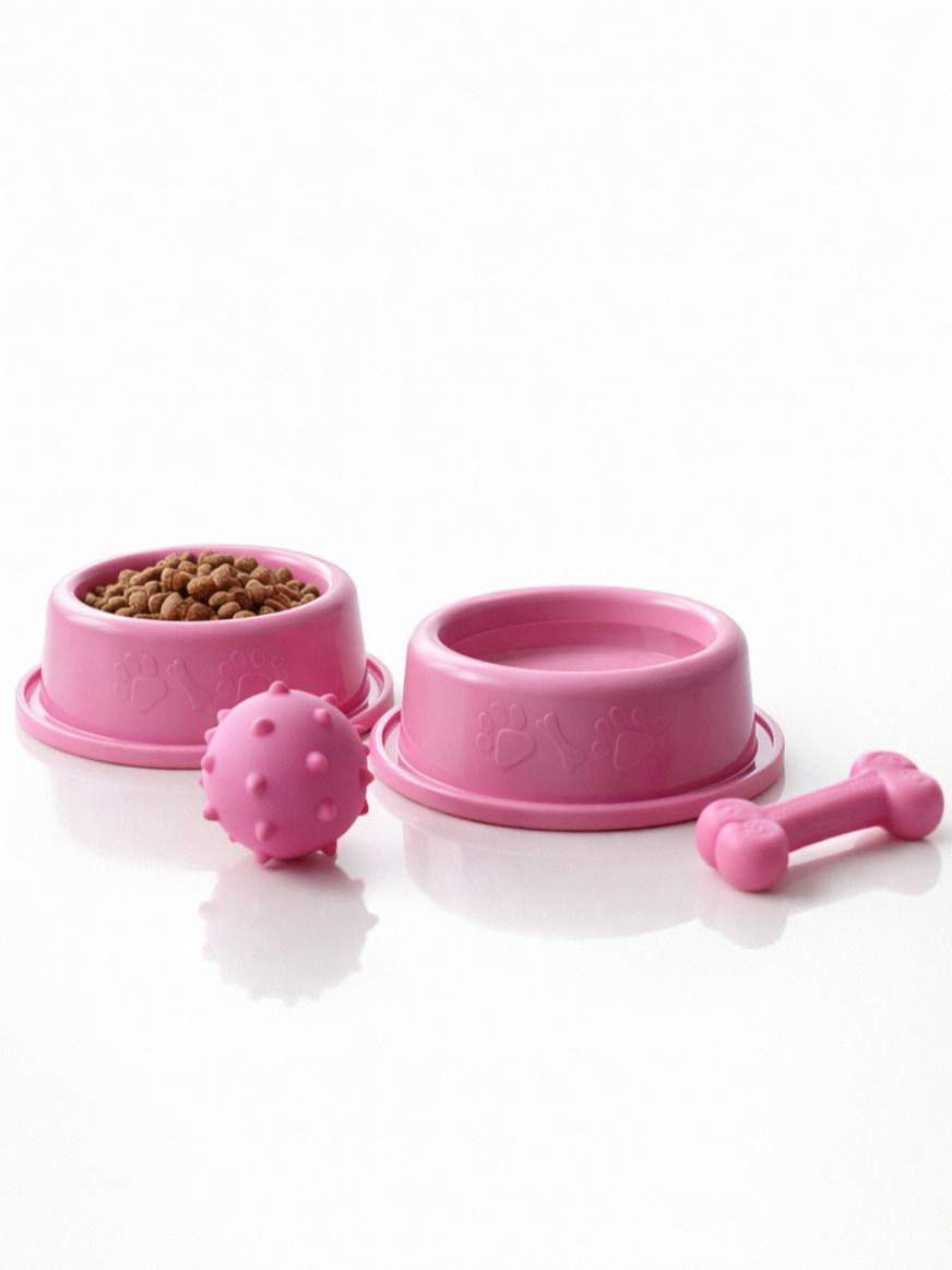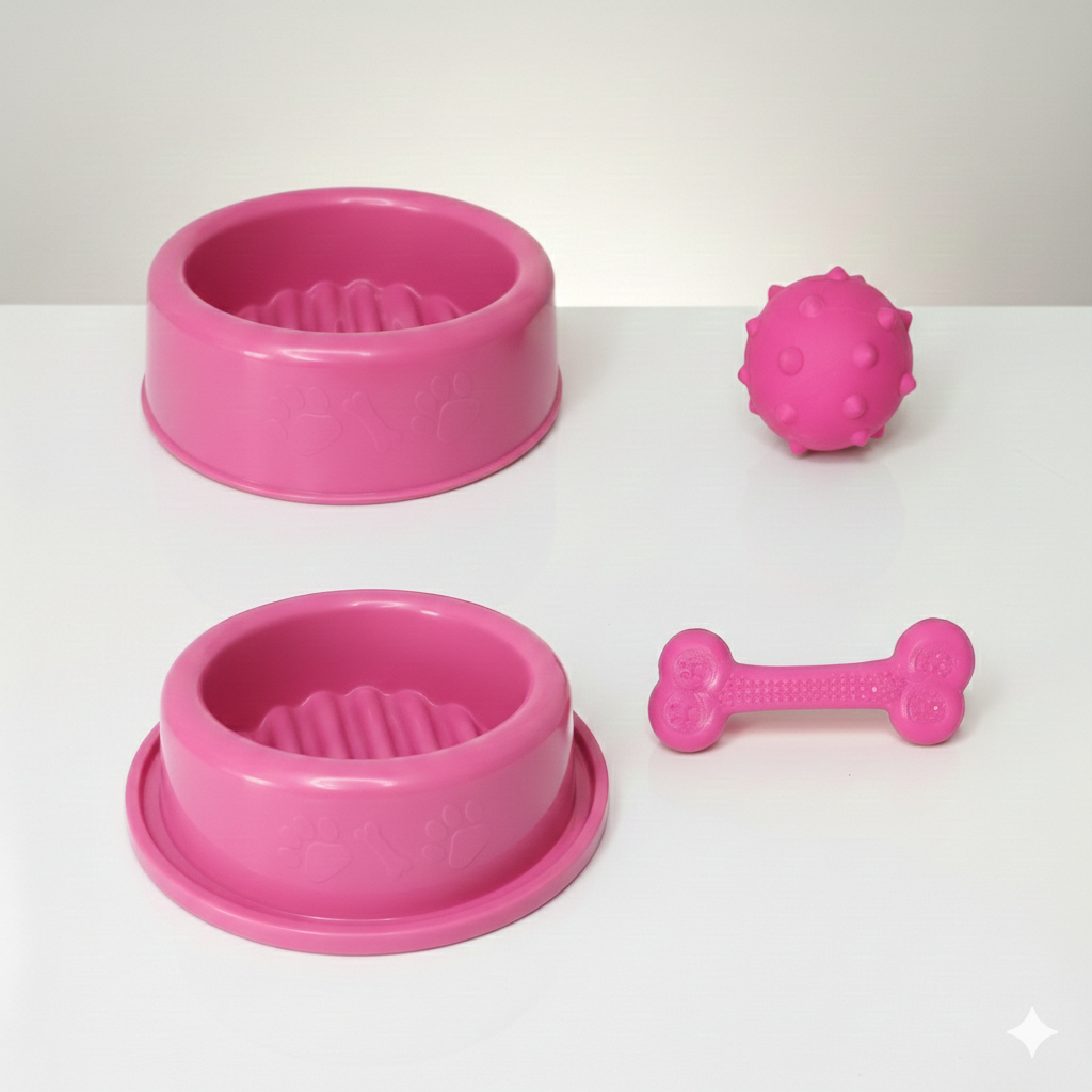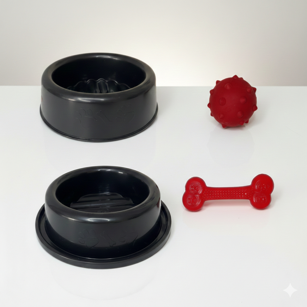 Kit Comedouro Anti Formigas + Bebedouro Para Cães e Gatos + Bolinha + Osso - Brinquedo 300ML