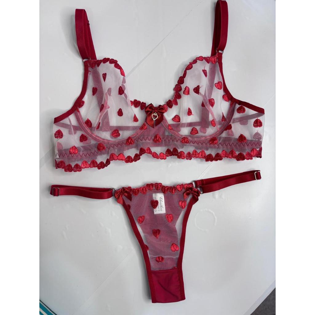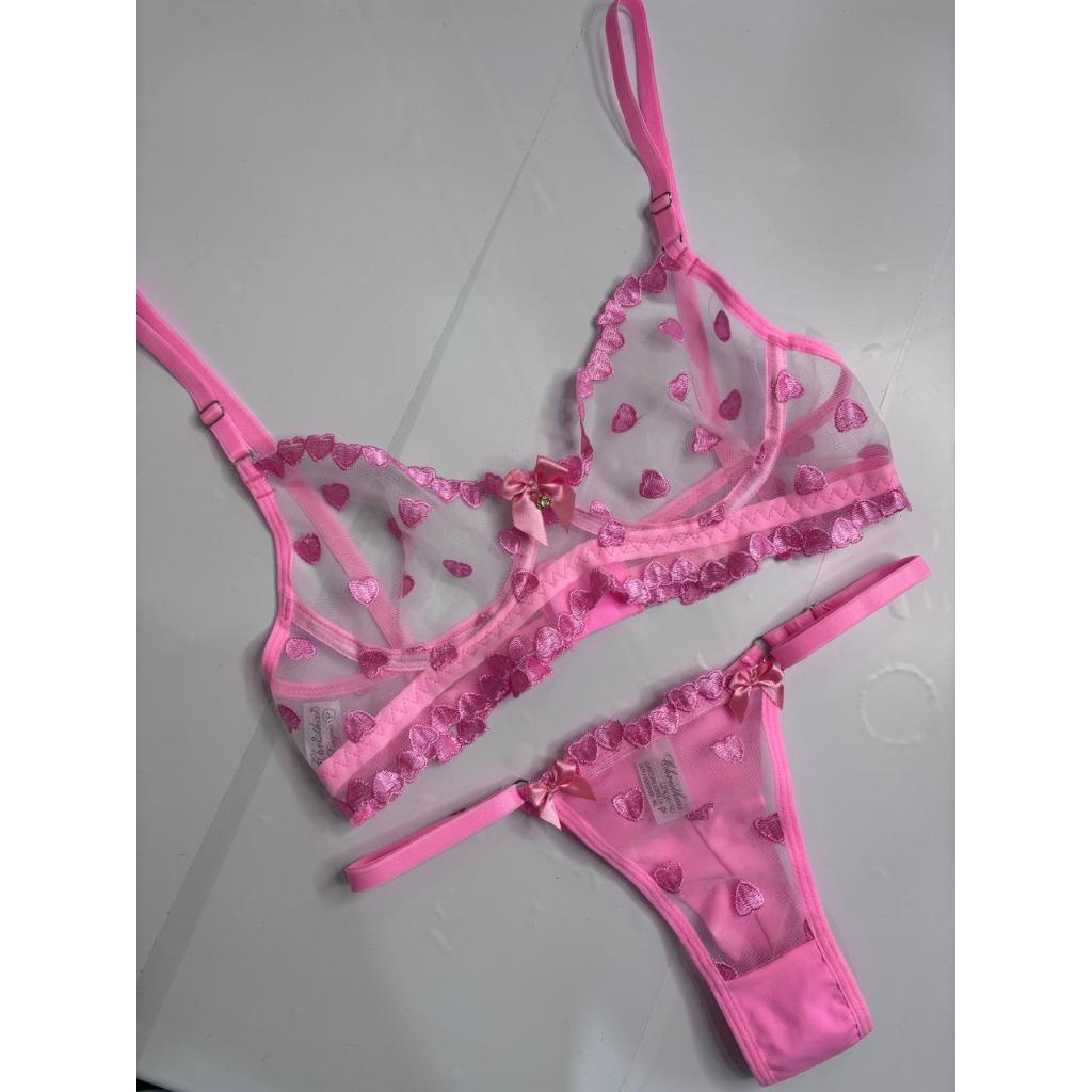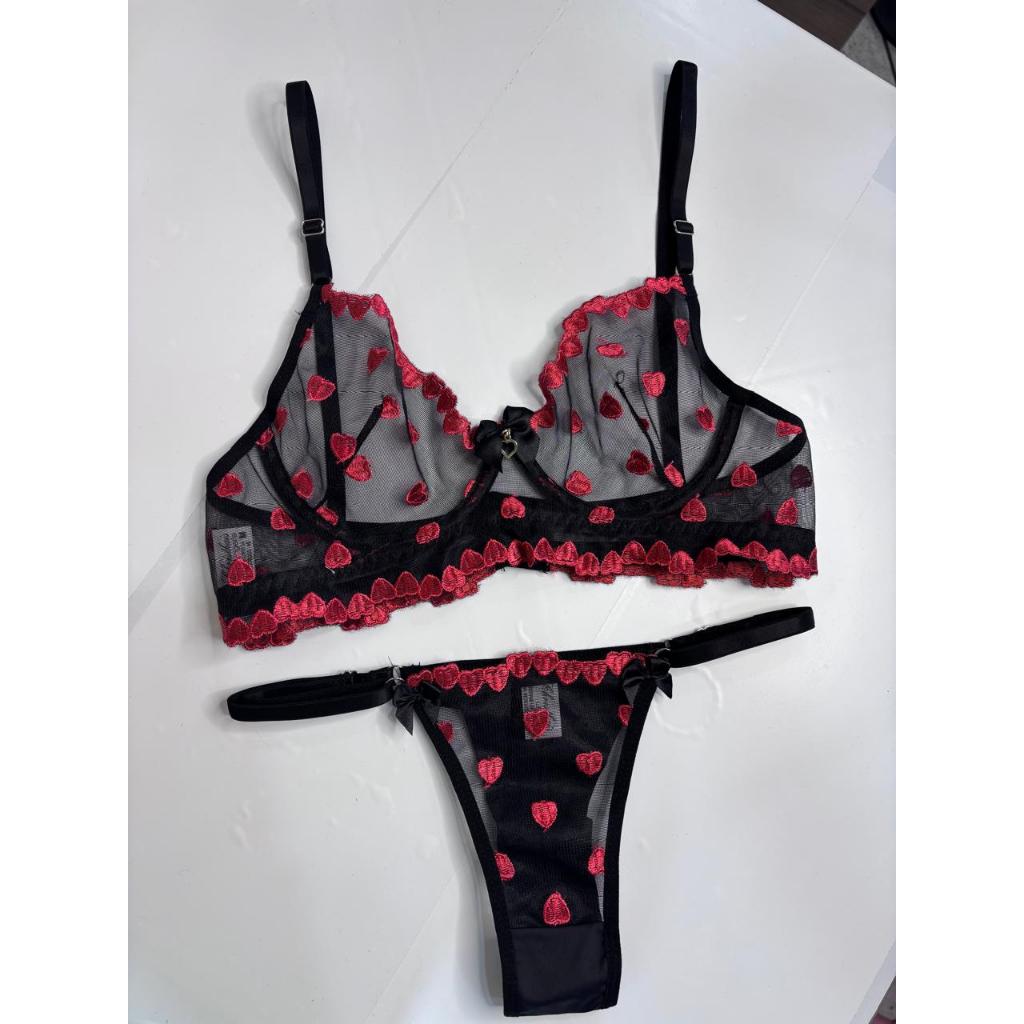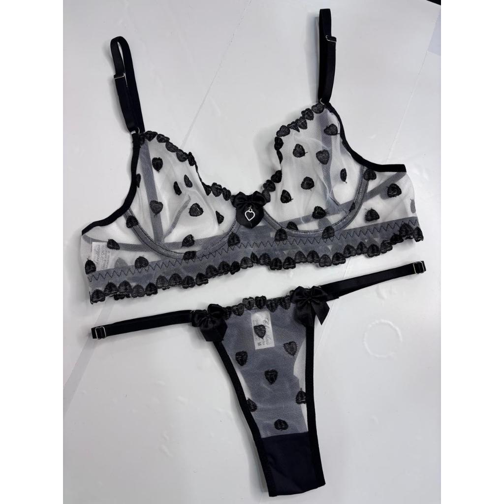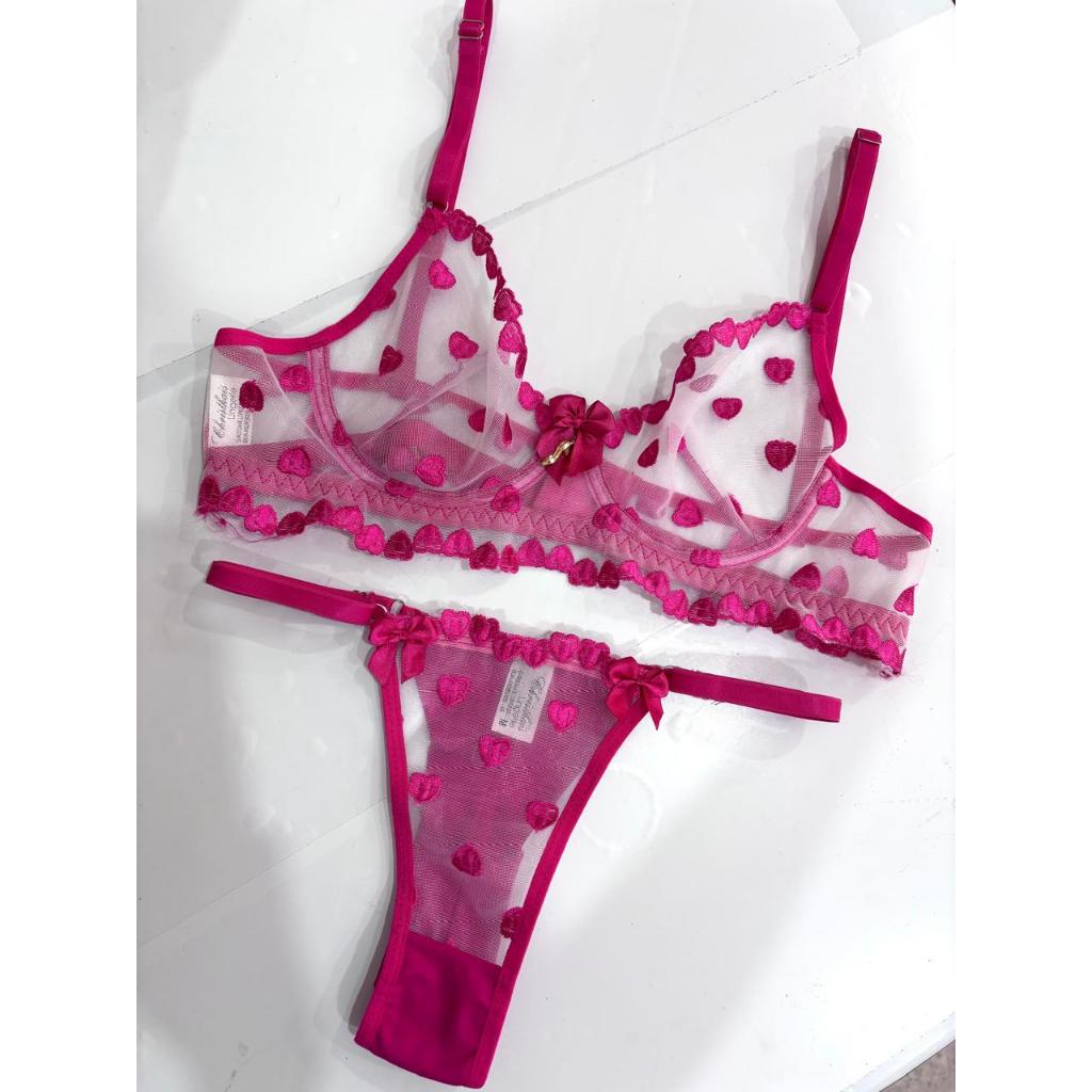Conjunto Lingerie Sutiã Tule Transparente Bordado Fio duplo Tule Regulagem Laço Moda Íntima Feminino