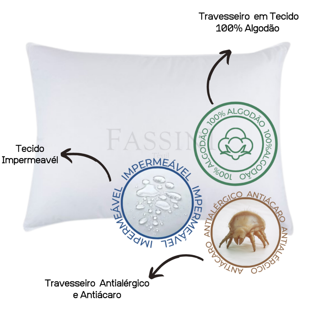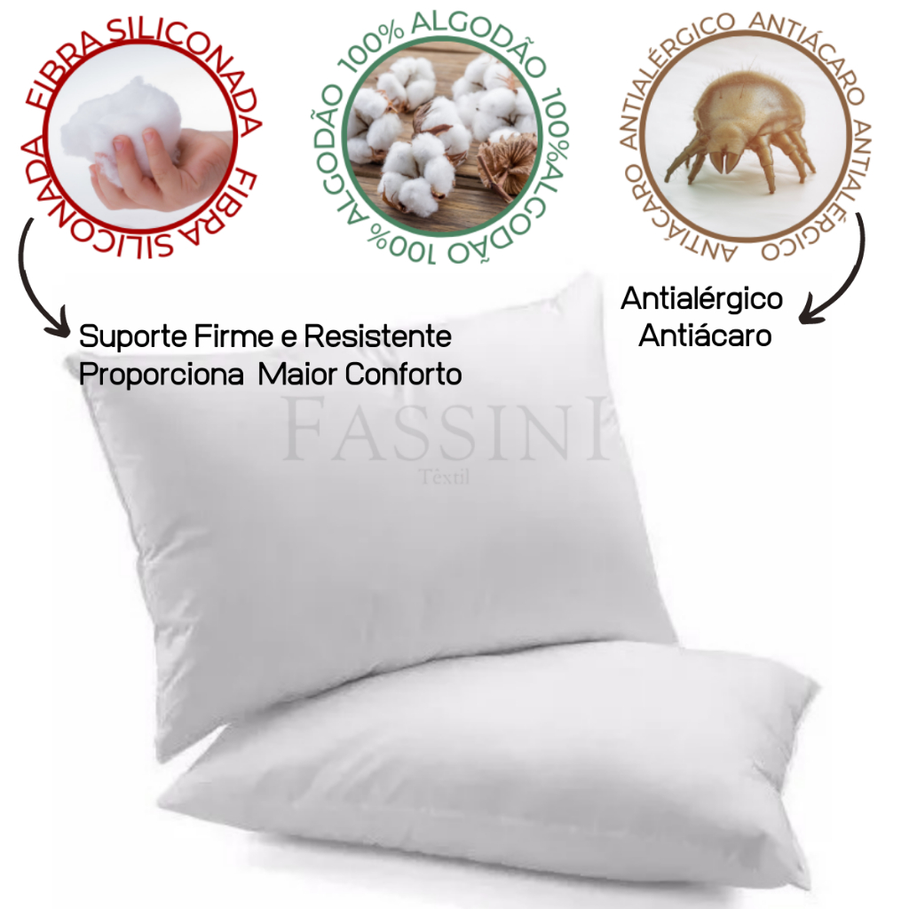 Kit 2 Travesseiros Antialérgico Impermeável 50x70 Suporte Firme Fibra Siliconada percal 100% Algodão