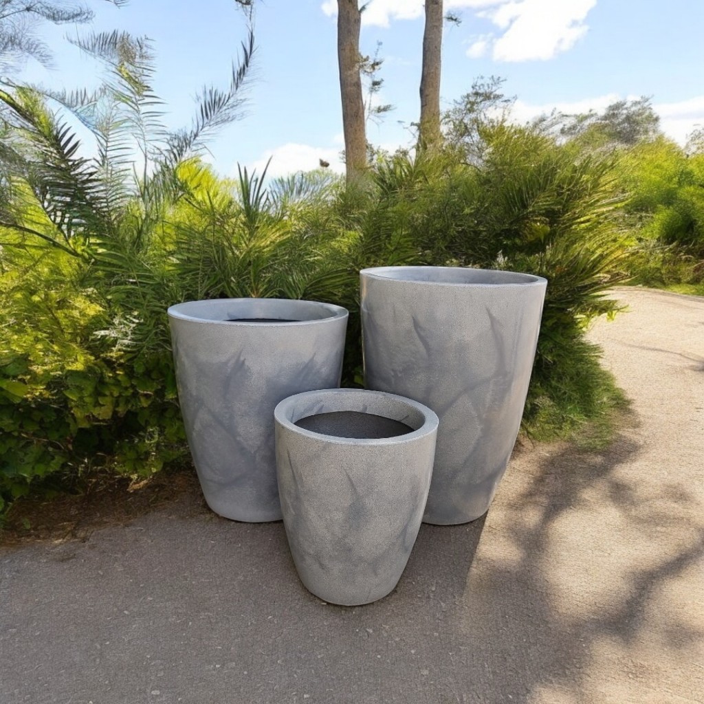 Kit 3 Vasos para plantas decorativo em polietileno marmorizado redondo altos largos PP, P e M