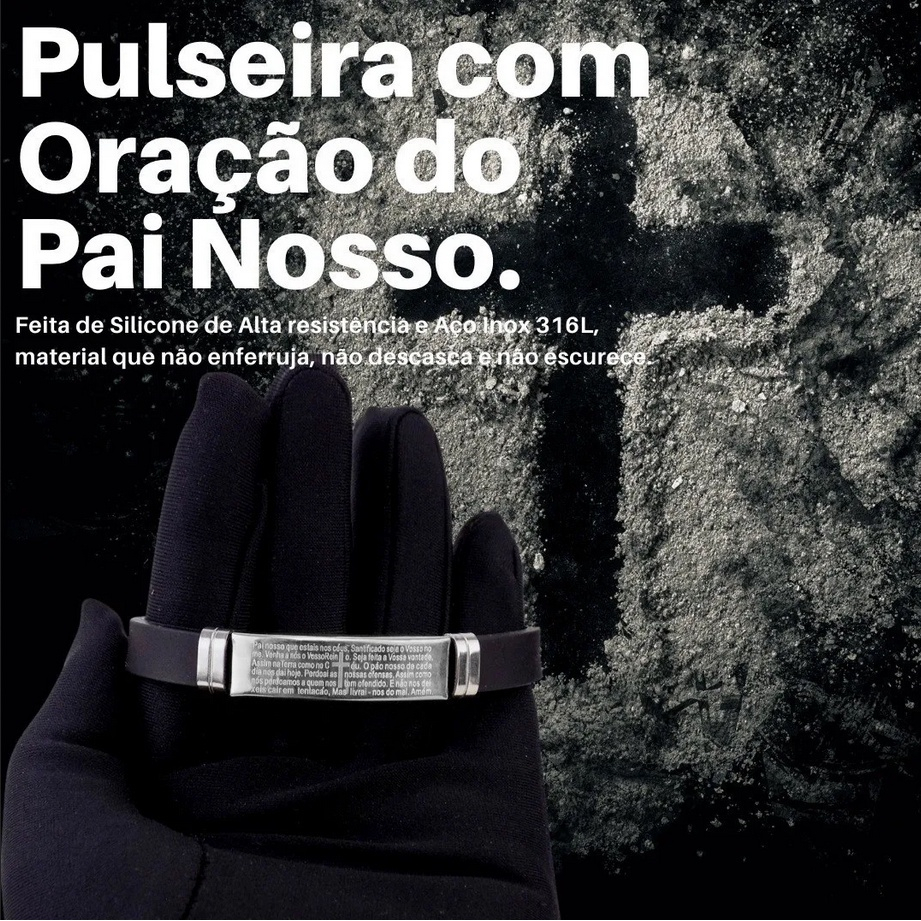 Pulseira masculina ajustavel Pai nosso Borracha resistente Prata