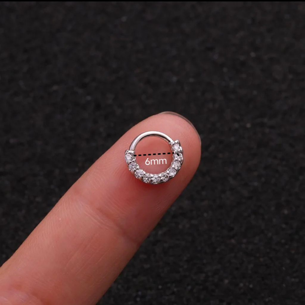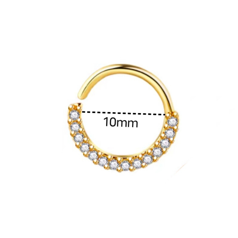 1Pç Piercing cravejado zirconia septo tragus hélice nariz orelha cartilagem piercing argola torção prateado dourado