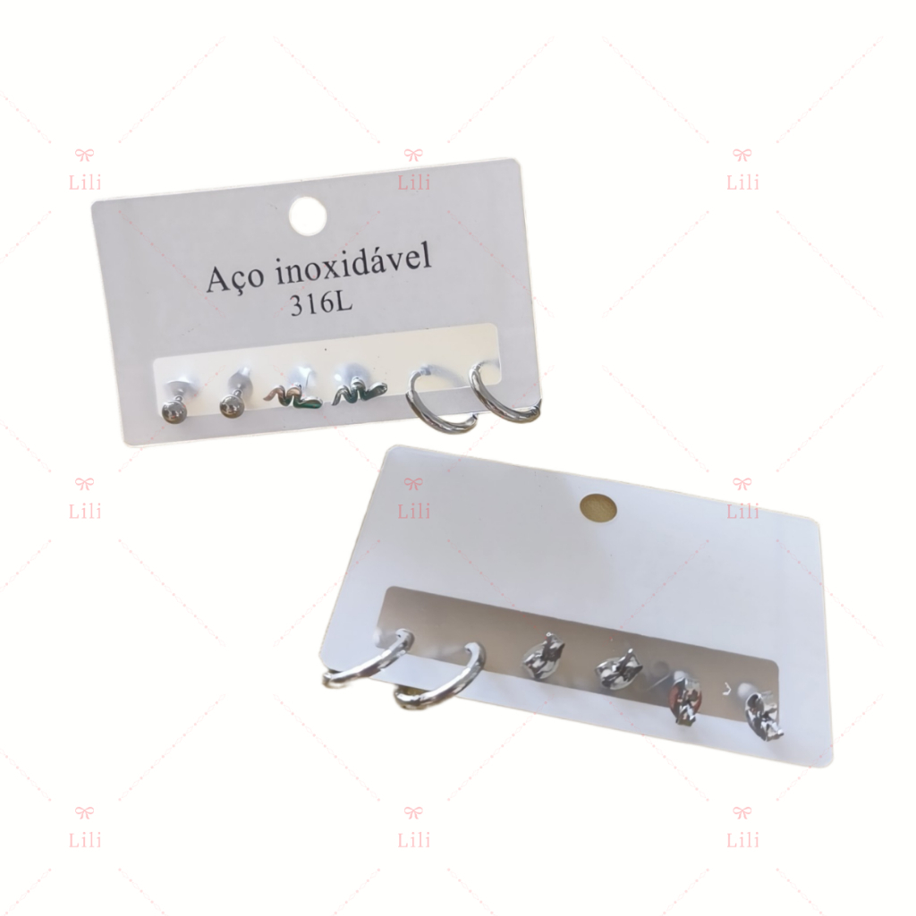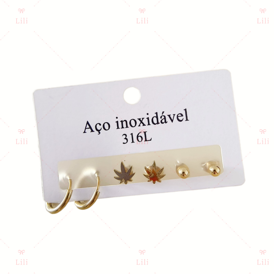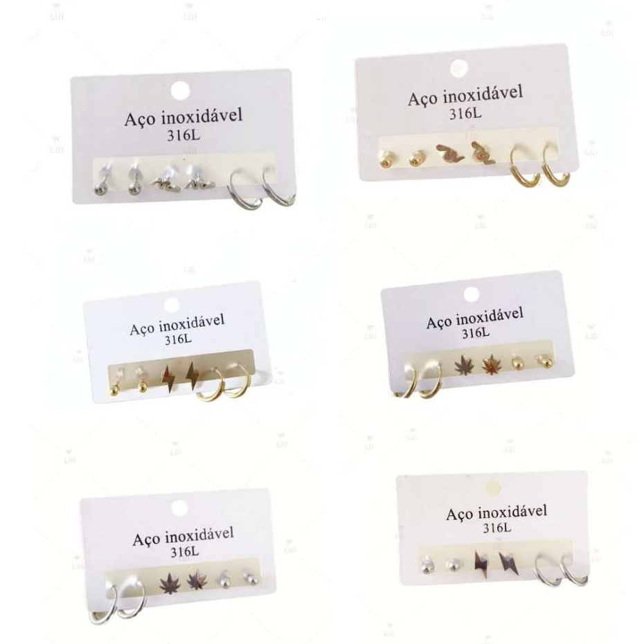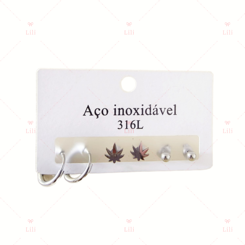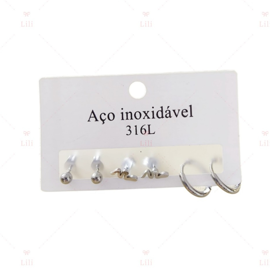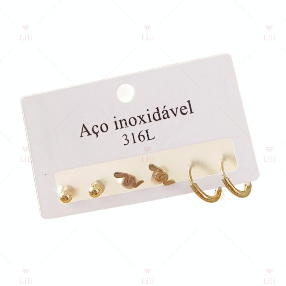 Kit 3 Pares Brinco pequeno com medio argola aço inoxidável