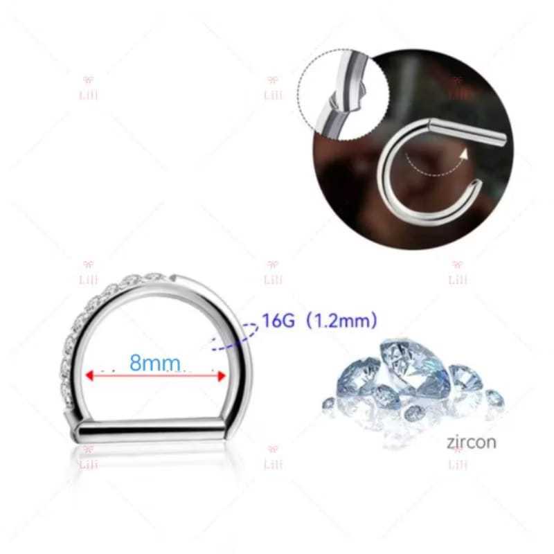 1 Piercing Meia Argola Aço cirúrgico Segmento Articulado Zircônia / Septril, Rook, Conch, piercing corpo