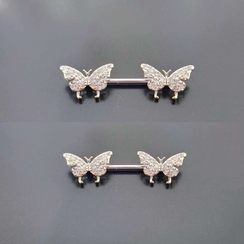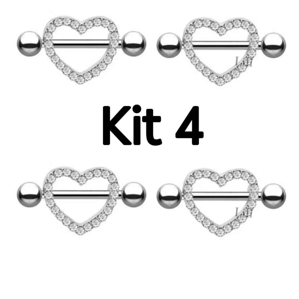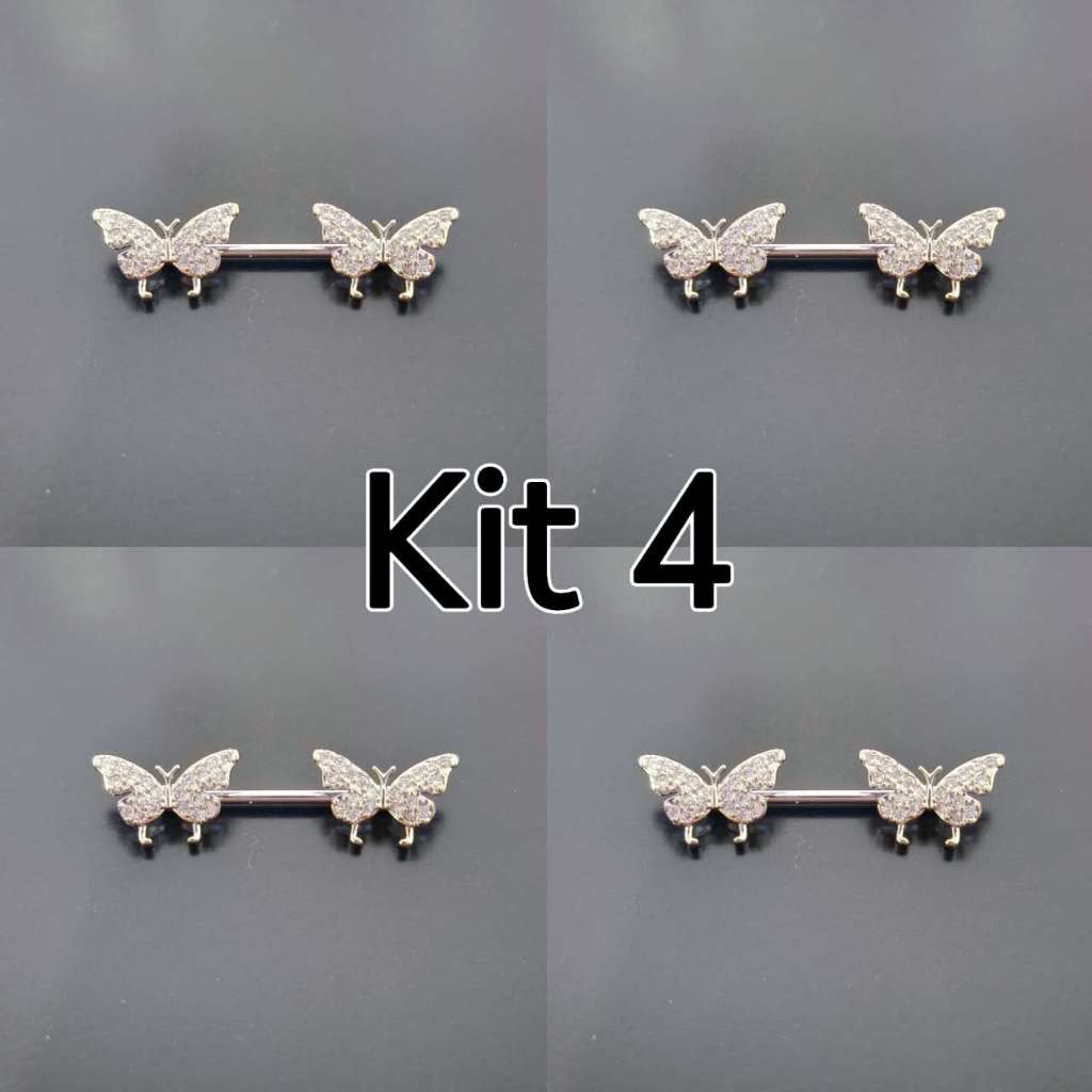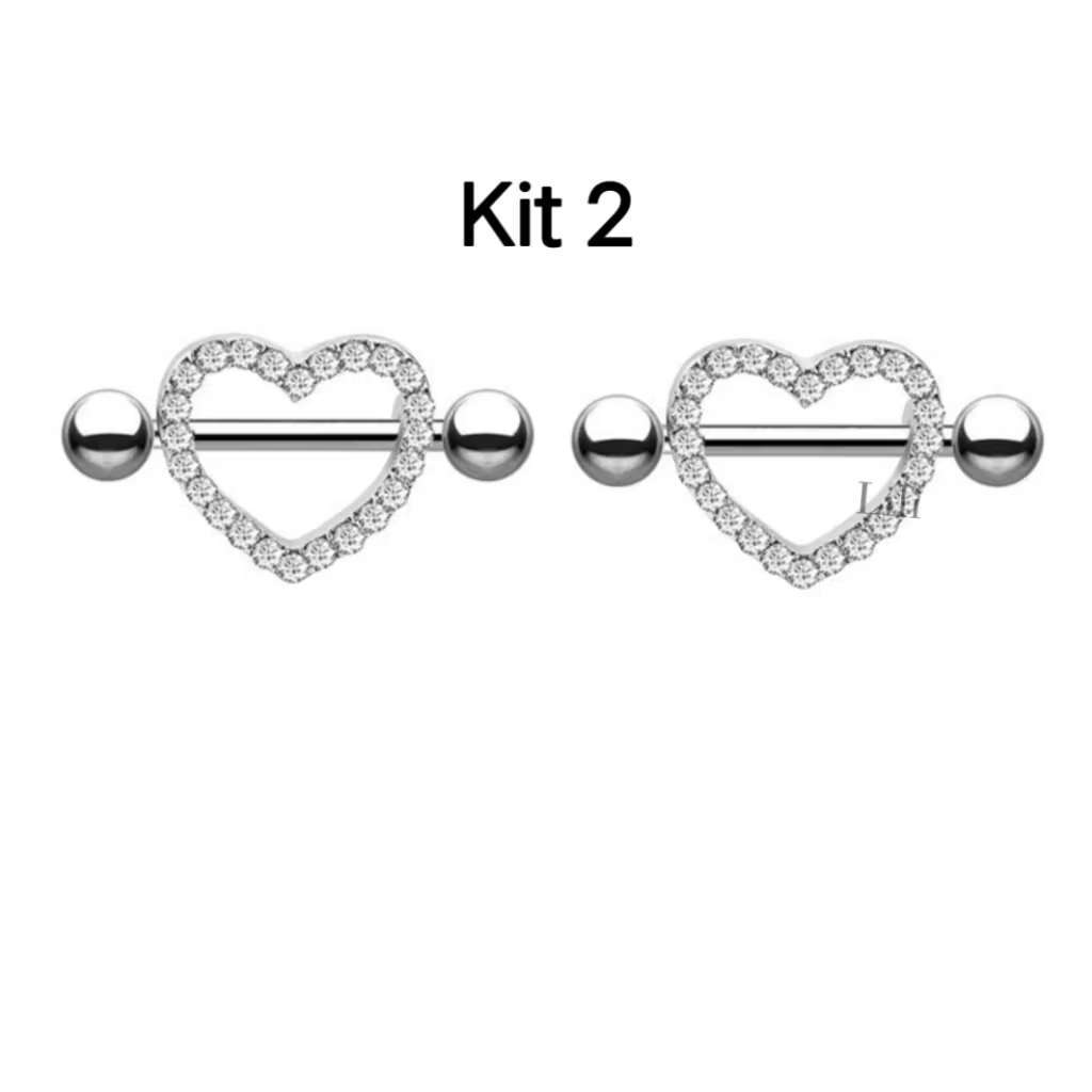 Kit 2 Piercing Mamilo Modelos Coração/Cobra/Borboletas/ Cravejado