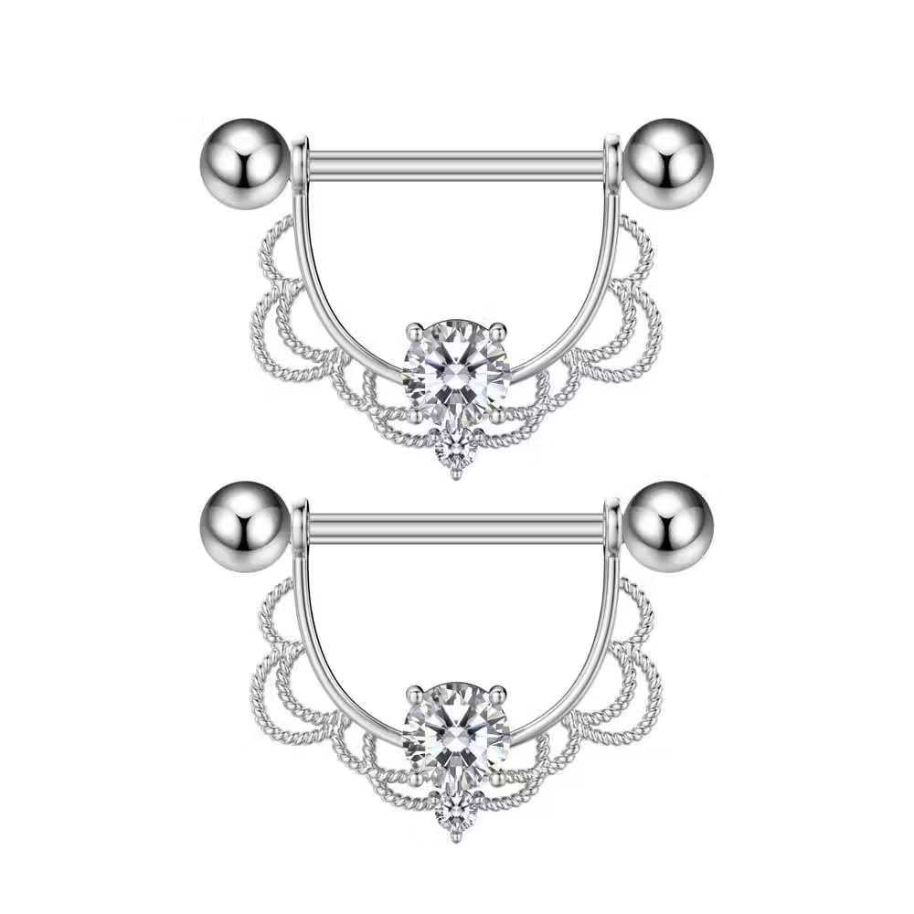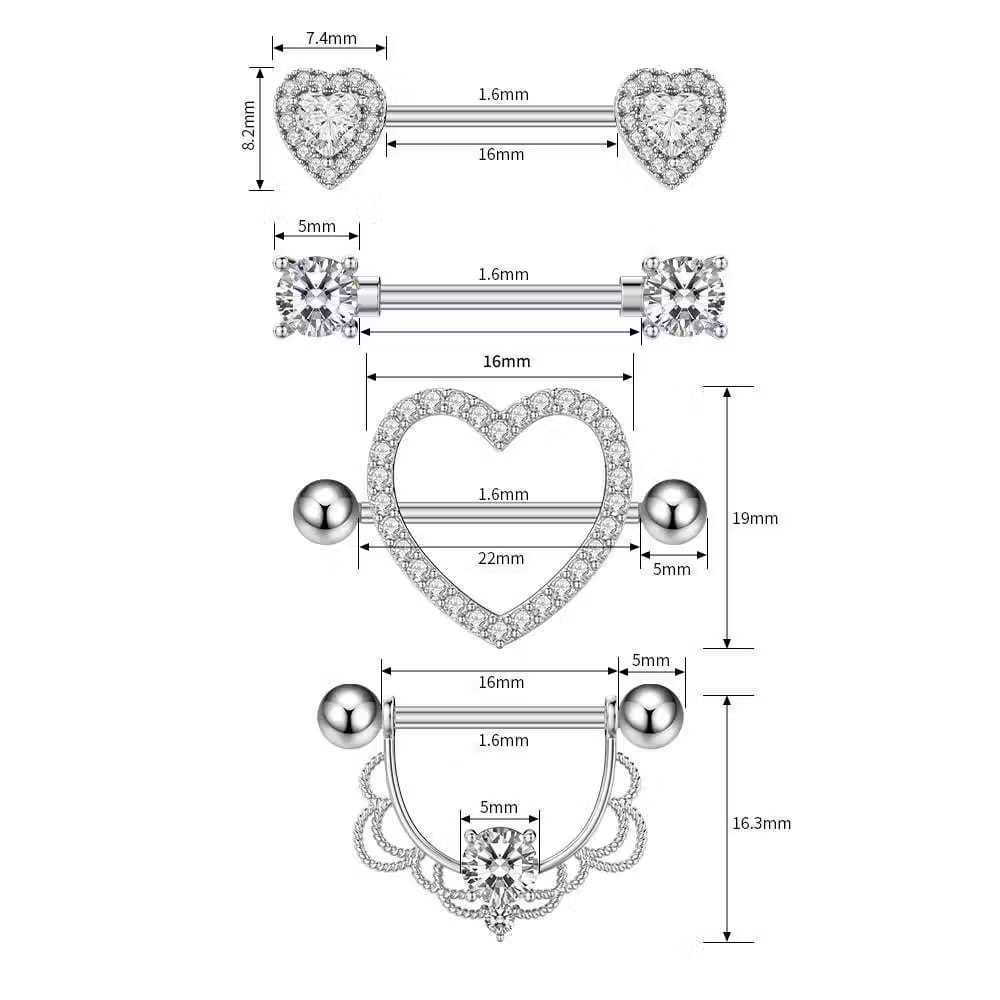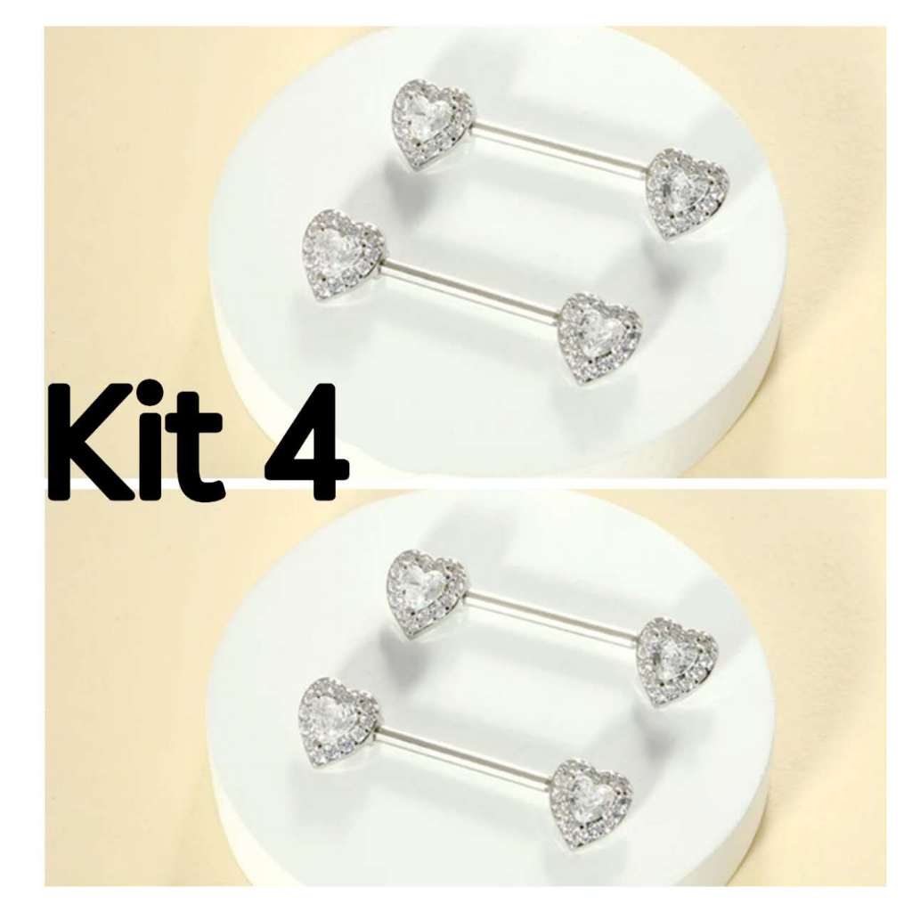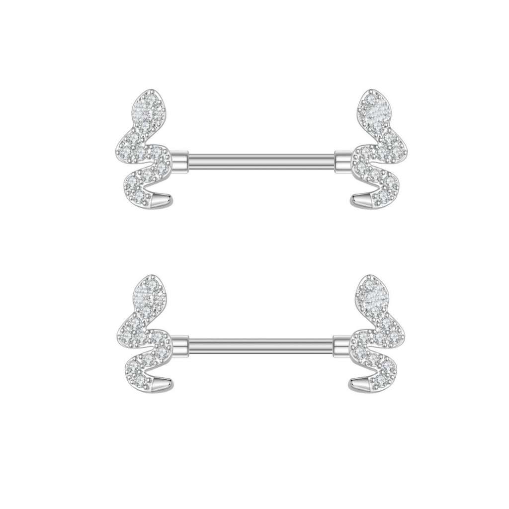 Kit 2 Piercing Mamilo Modelos Coração/Cobra/Borboletas/ Cravejado