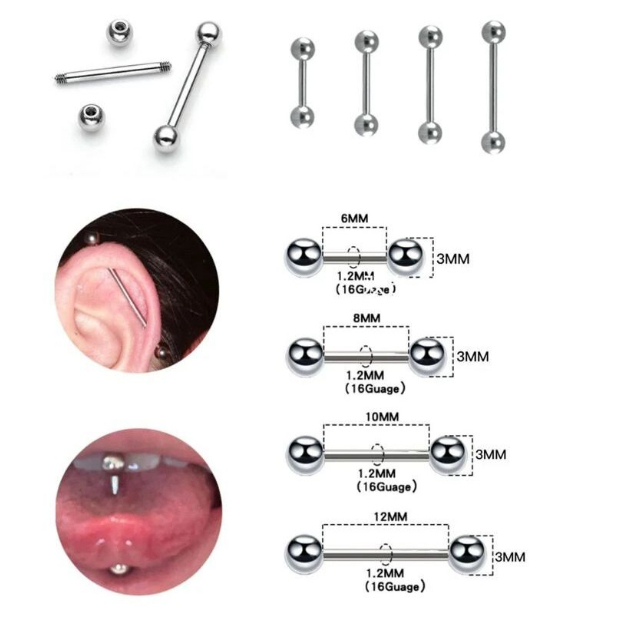 Kit 12/24 Piercing micro Bell Reto / Industrial Varios Tamanhos