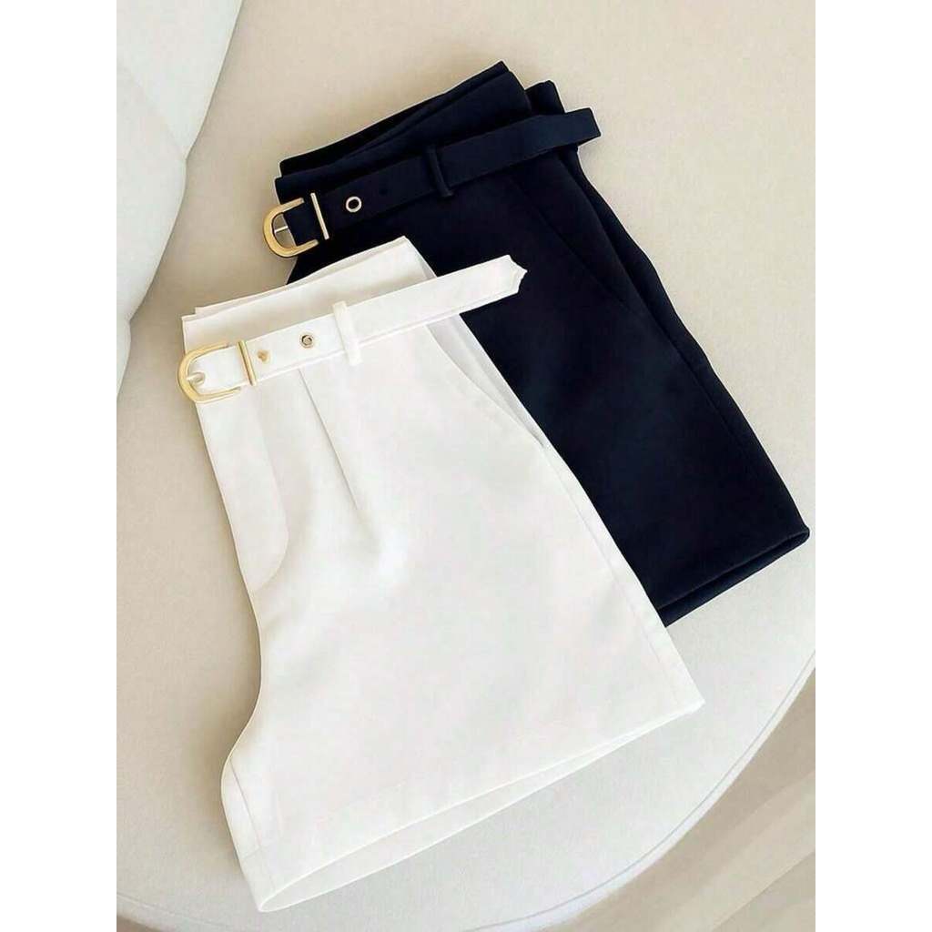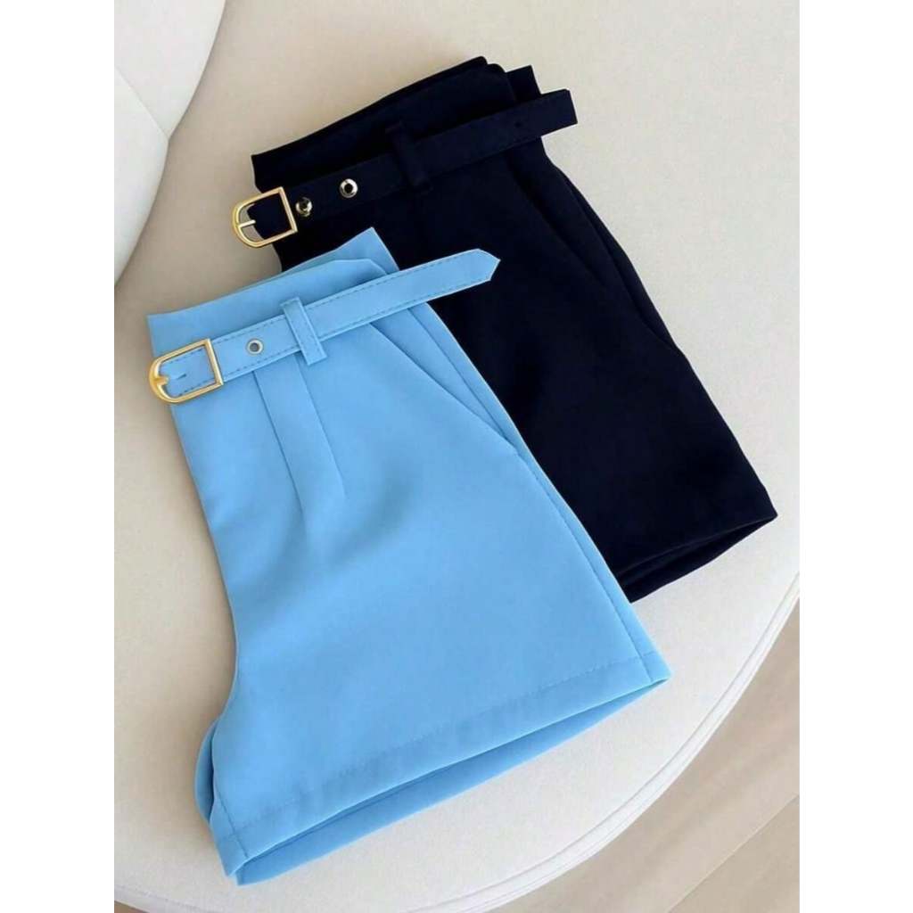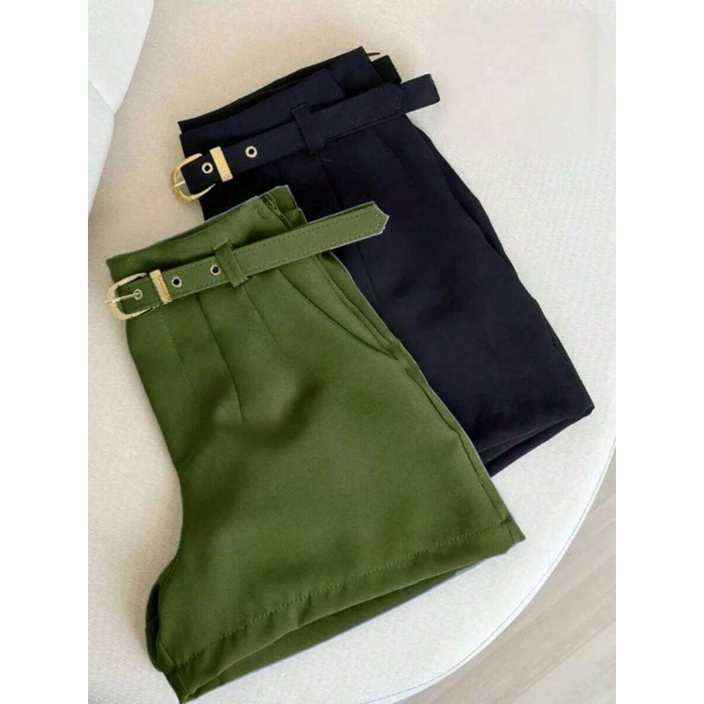 Kit 2 Shorts Feminino Alfaiataria tecido Sensorial Com Cinto 2026/2027