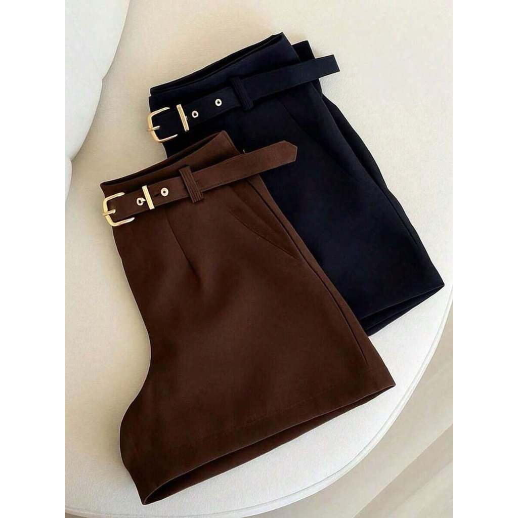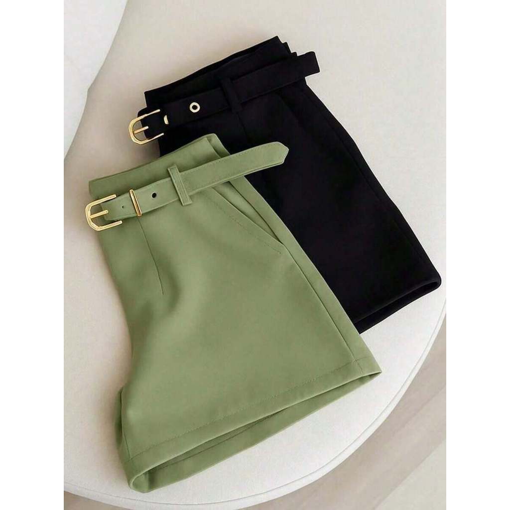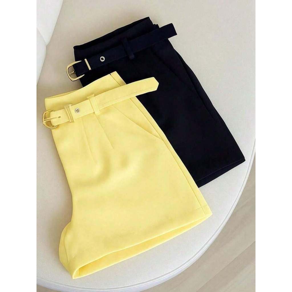 Kit 2 Shorts Feminino Alfaiataria tecido Sensorial Com Cinto 2026/2027