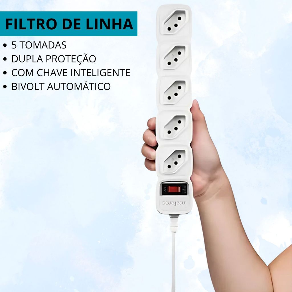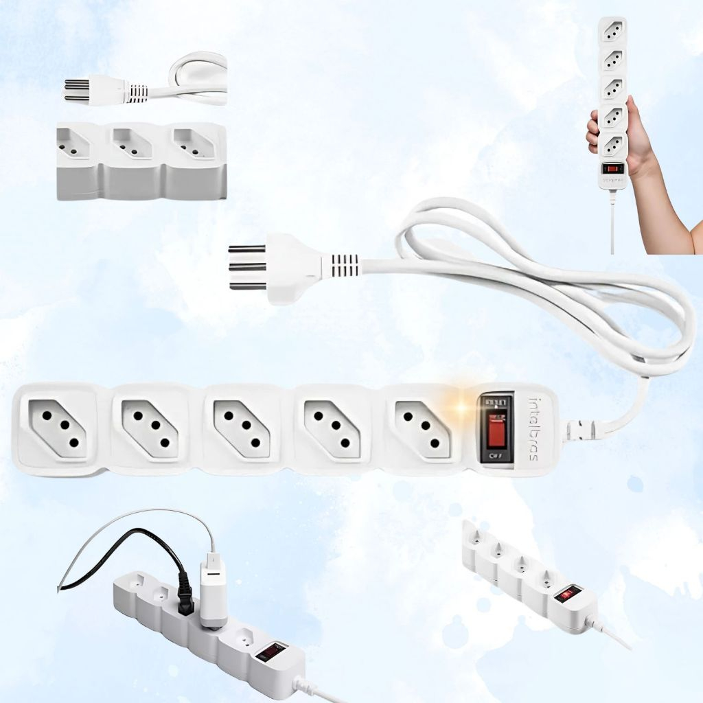 Extensor de Tomada de Parede Elétrica Extensão Filtro de Linha Régua com 5 tomadas 1m EPE- Intelbras