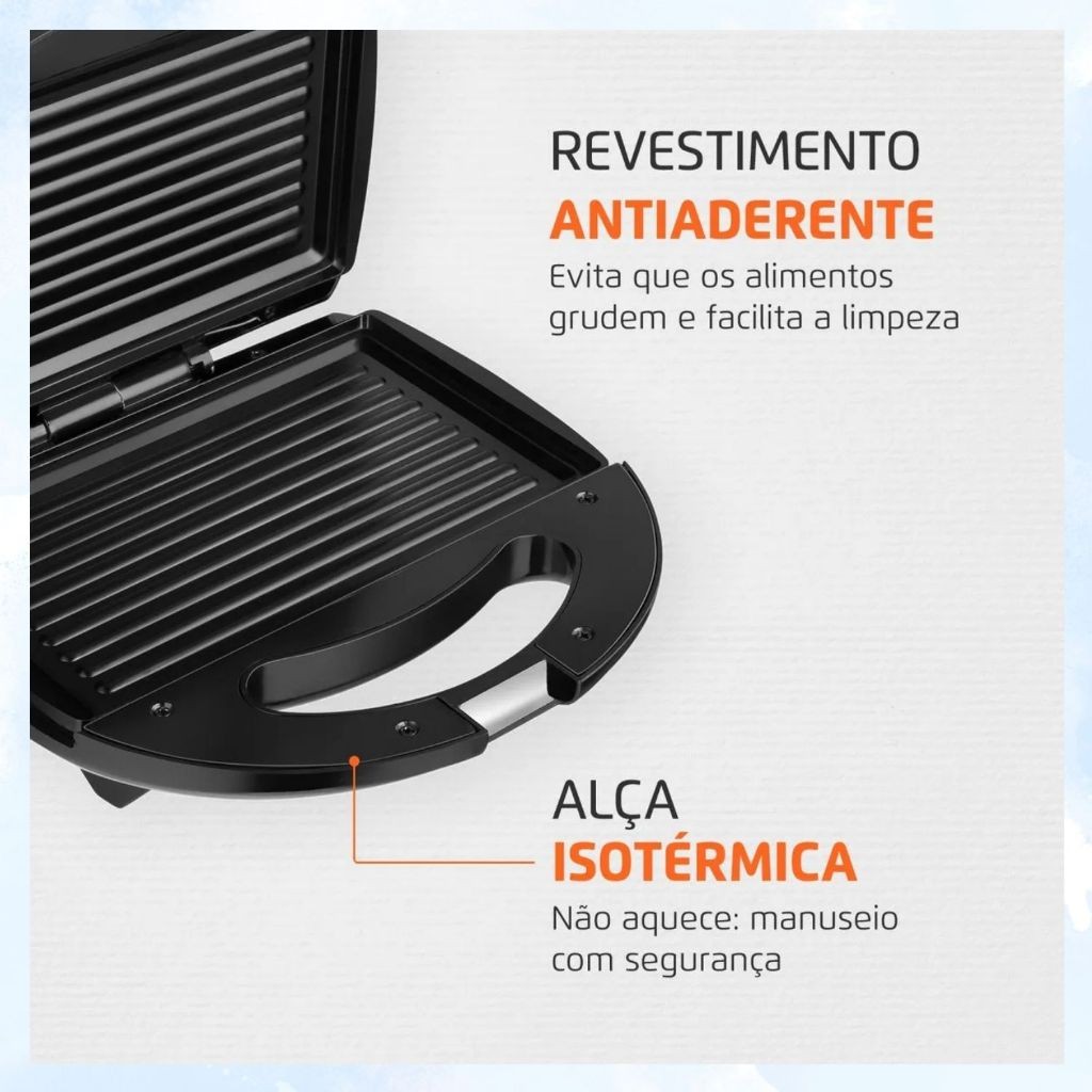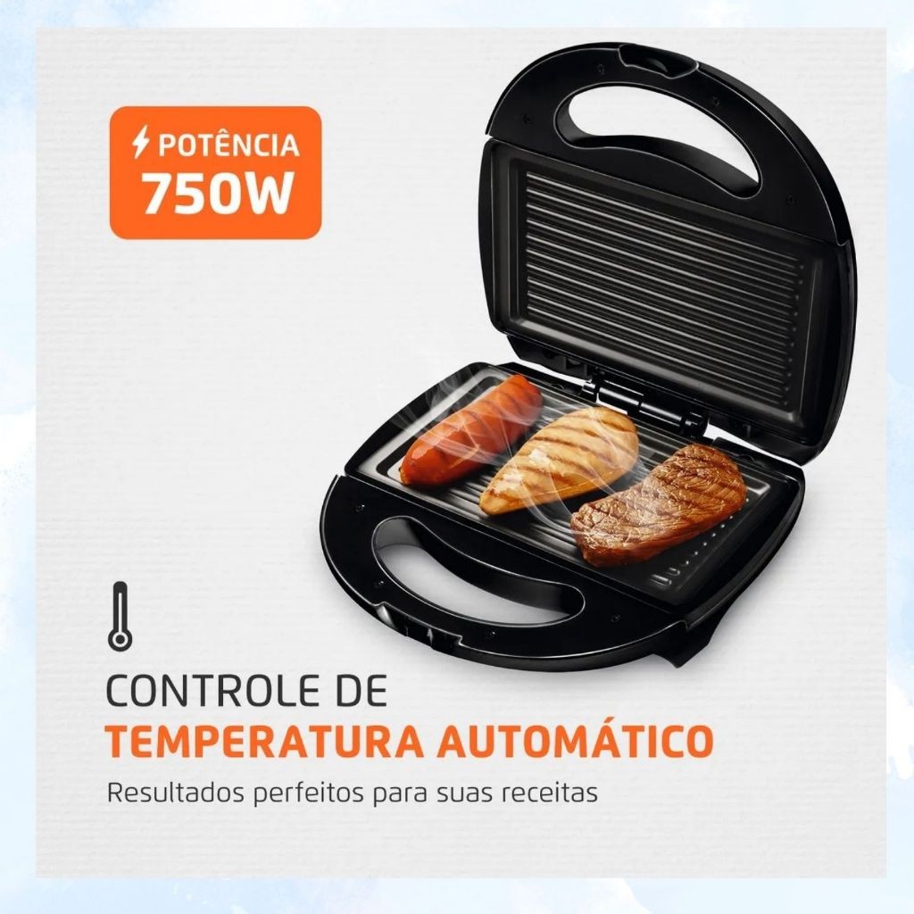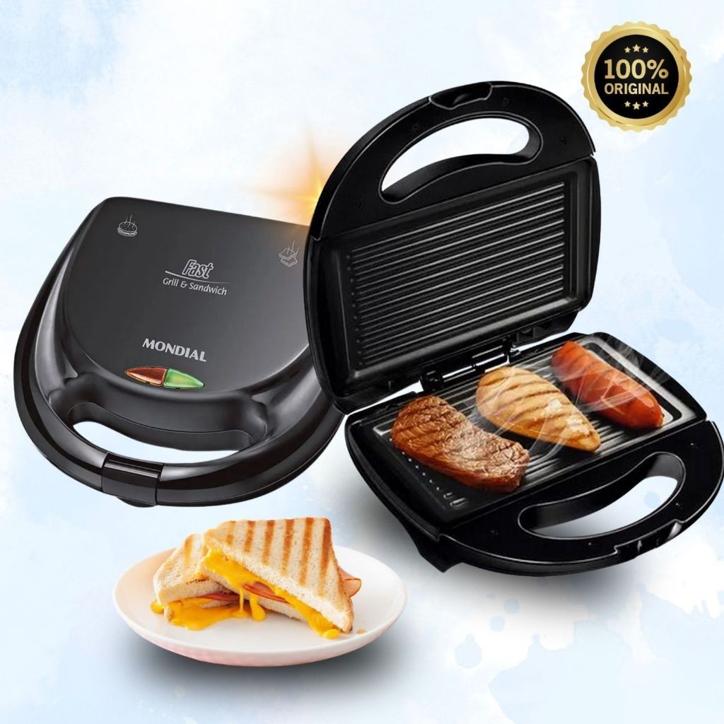 Sanduicheira Fast Grill Esquenta Rápido Grelhas Duplas Antiaderente Controle Temperatura Mondial S12