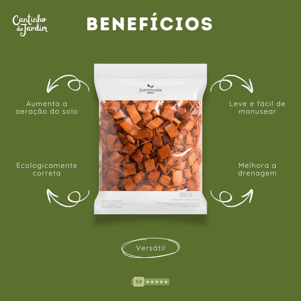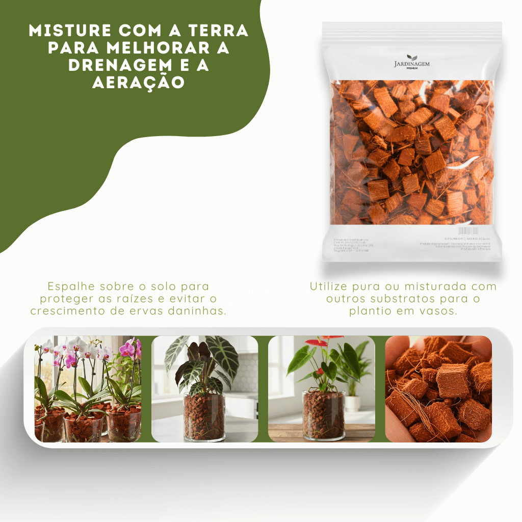 Chip de Coco Lavado 500g para Substrato, Orquídeas, Suculentas, Hortas, Drenagem e Jardinagem