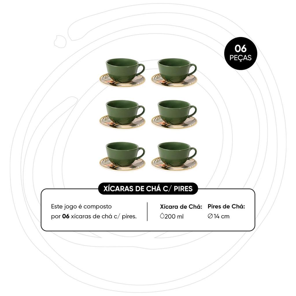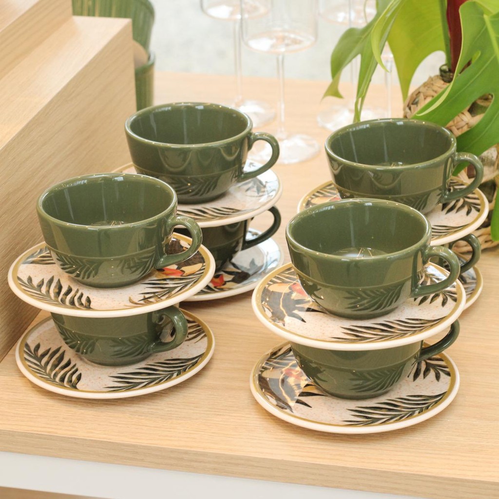 Jogo de 6 Xícaras G 200 ml Com Pires Oxford Unni Tropicano
