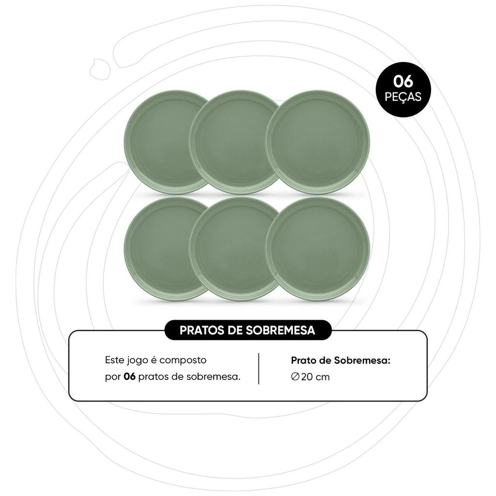 Jogo de 6 Pratos Sobremesa 20 Cm Oxford Flat Matcha