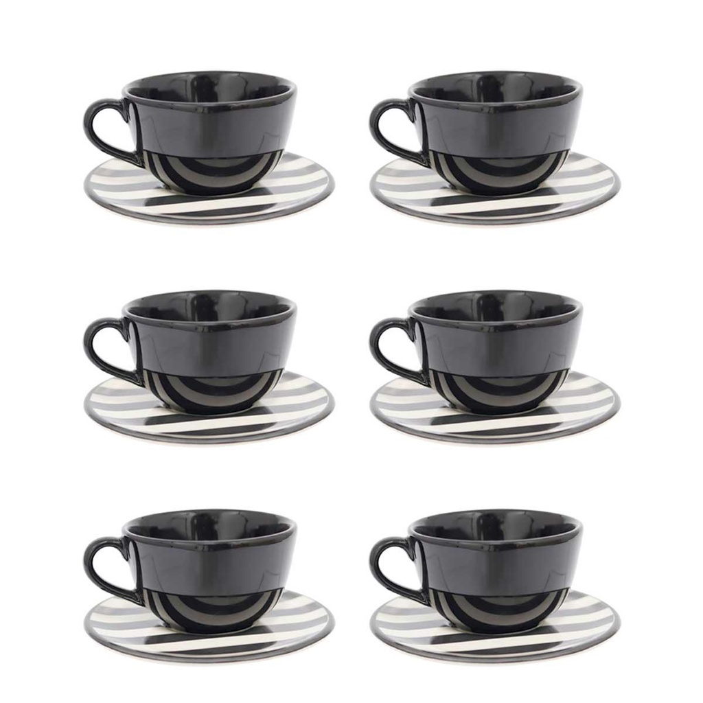 Jogo de 6 Xícaras Grandes 200 Ml Com Pires Oxford Unni Stripes And Dots