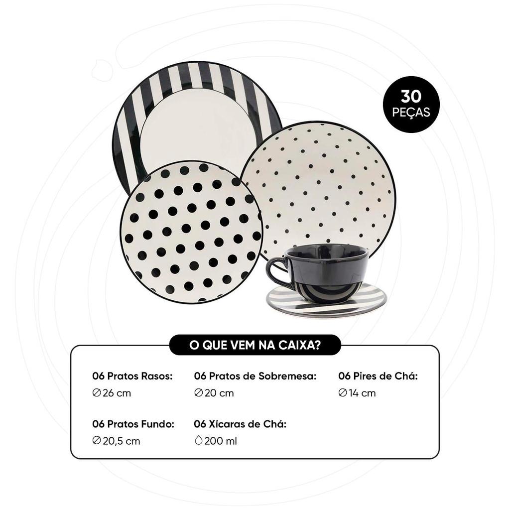 Aparelho de Jantar e Chá 30 Peças Oxford Unni Stripes And Dots