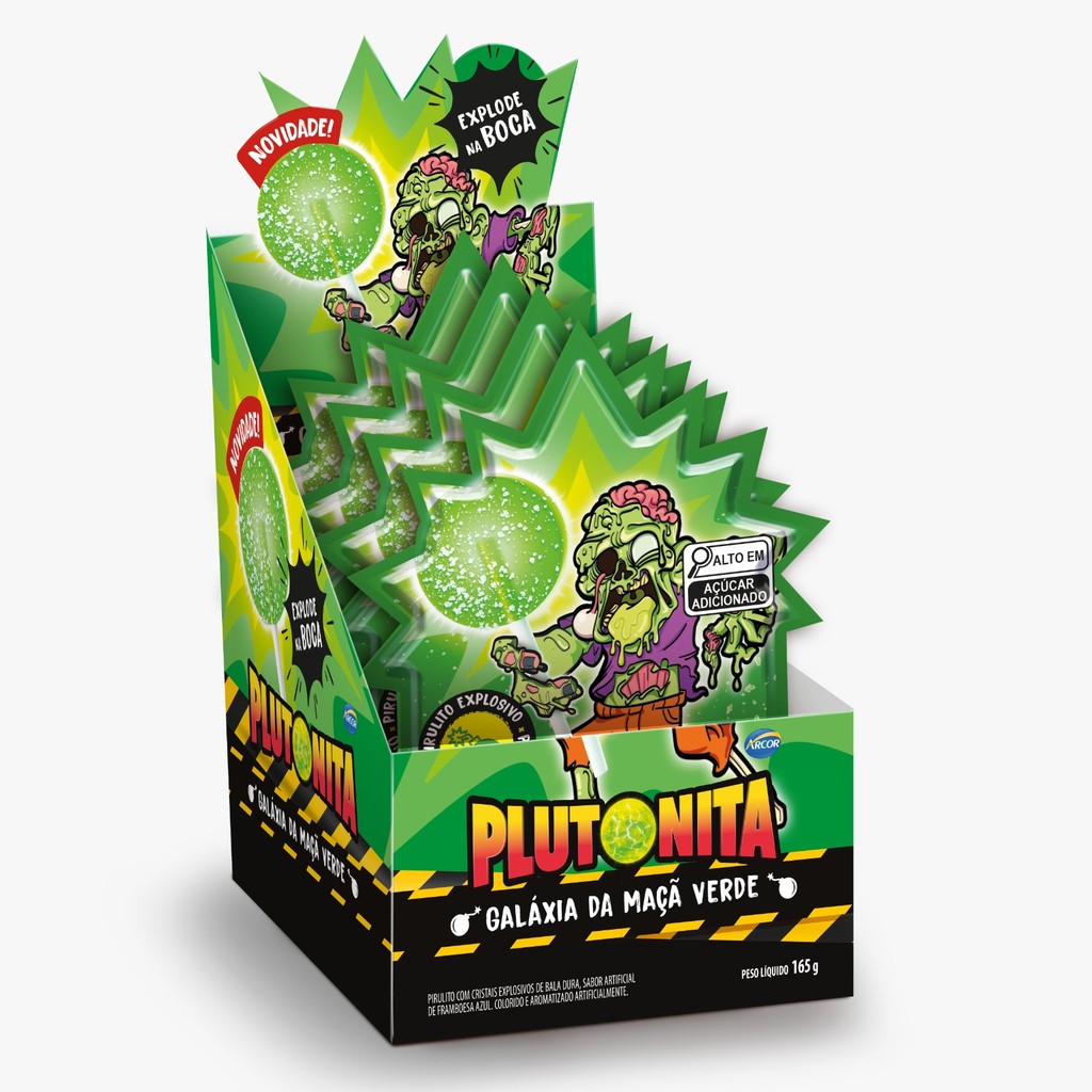 Pirulito Plutonita Explosivo Galáxia Maça Verde Com 15 Unidades De 11g