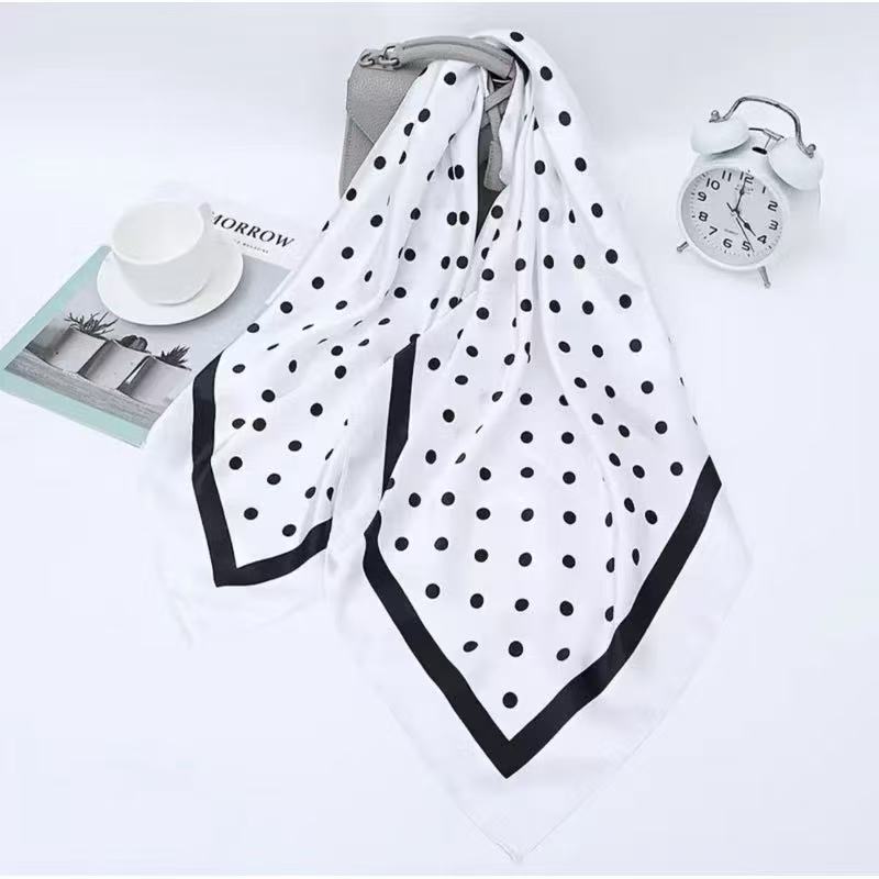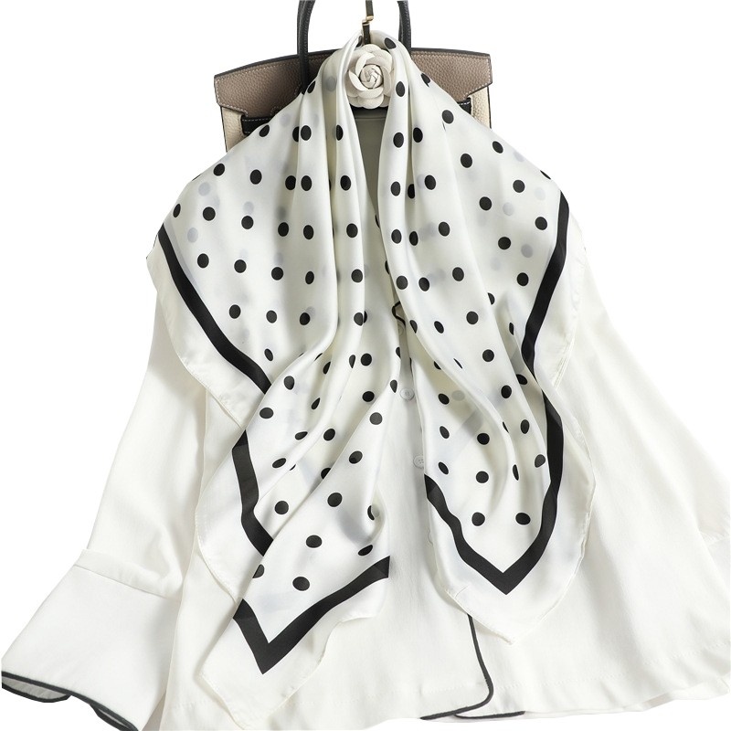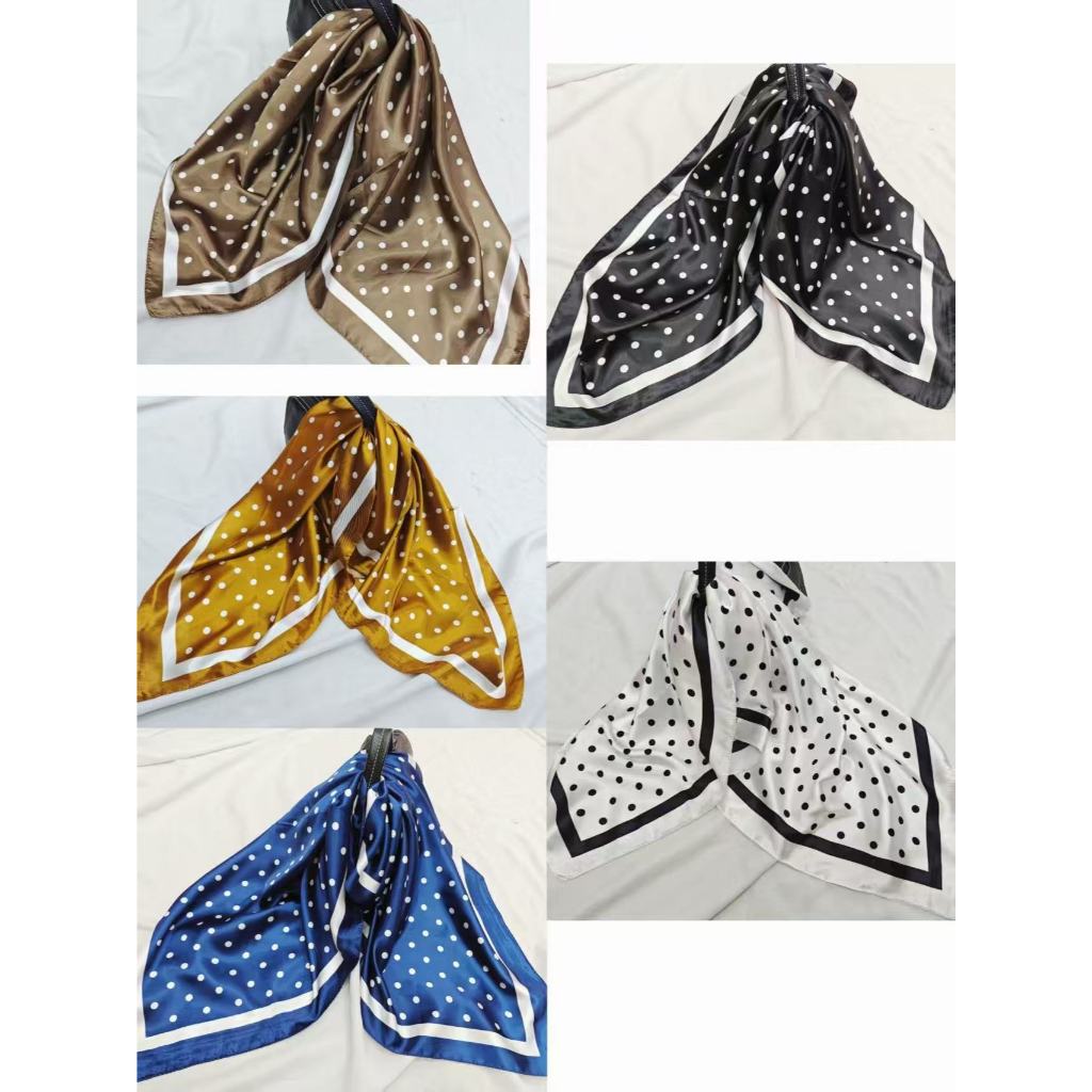 Lenço Cetim Cabeça Pescoço De Seda Moda Bolinha 90cm X 90cm