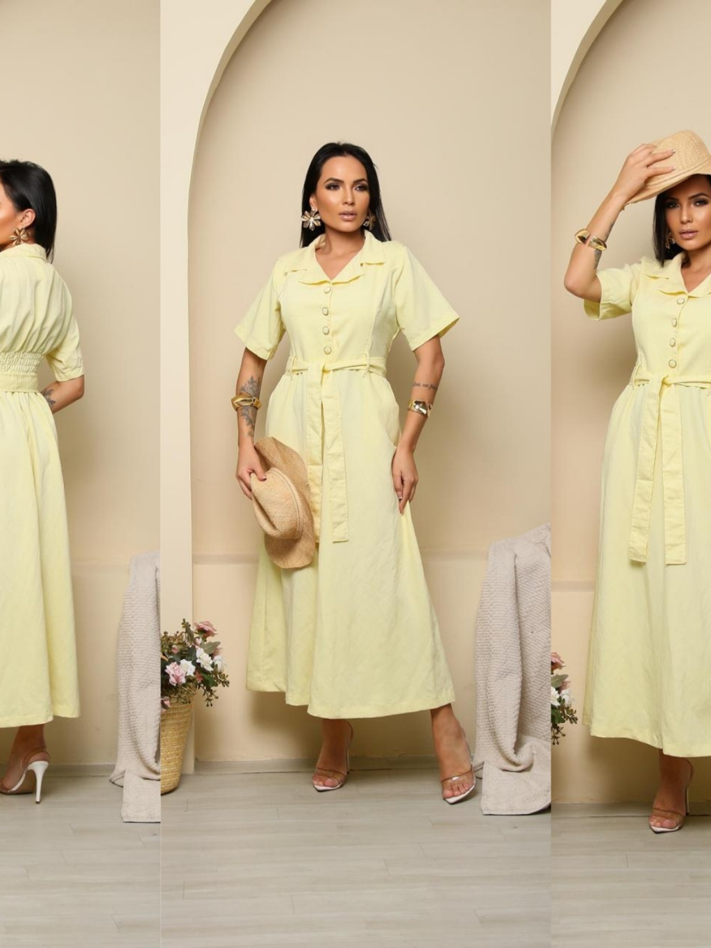Vestido Midi com Botões🔥 Elegante e Confortável – Moda Feminina Casual Chic,Cintura Marcada,Estilo Camisa,Tendência 2026