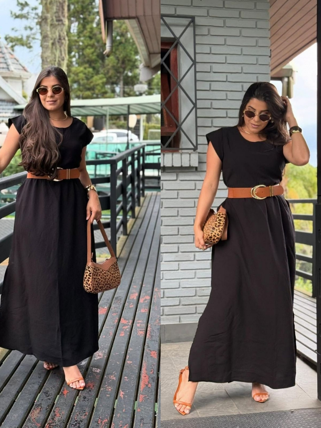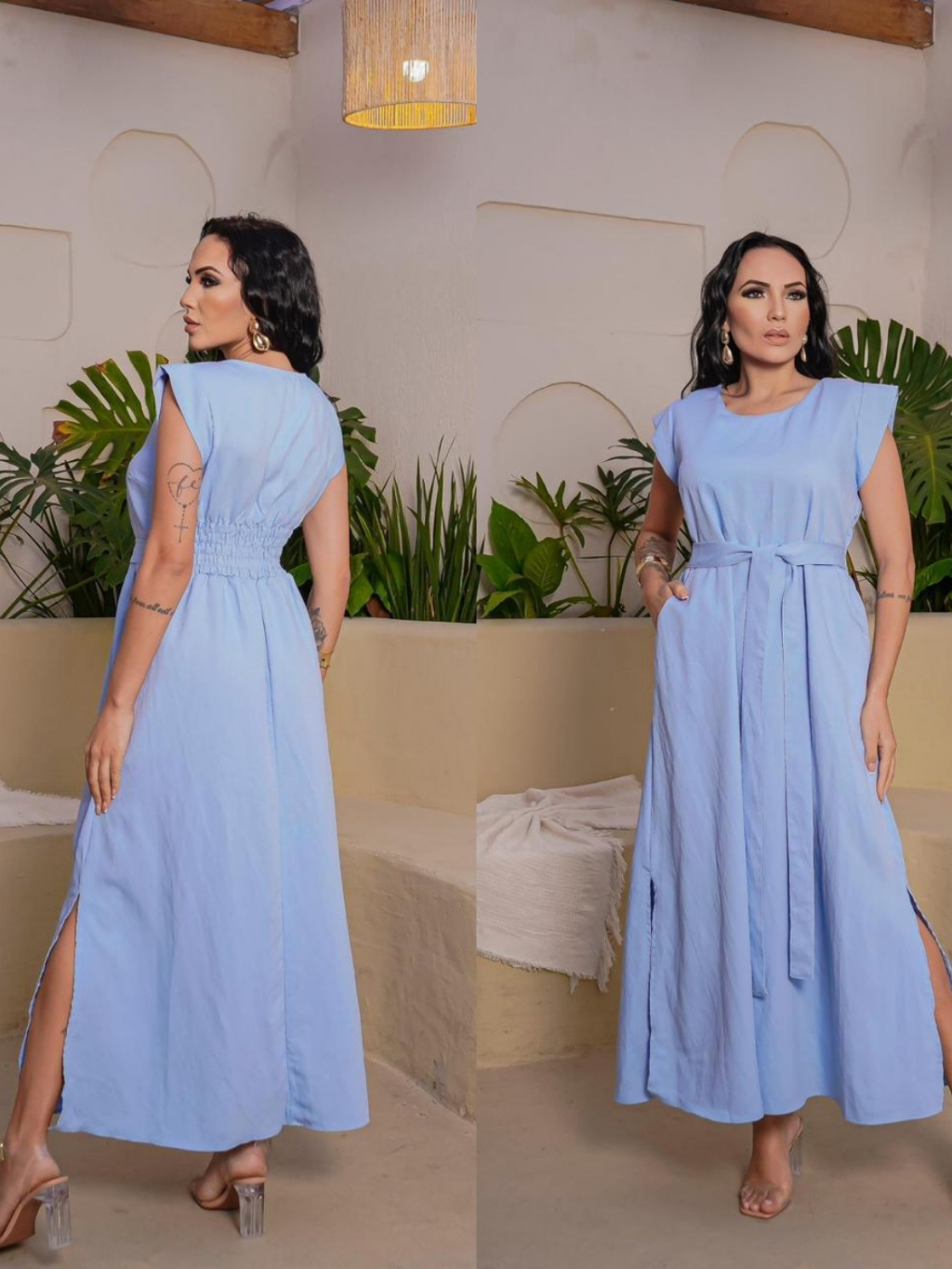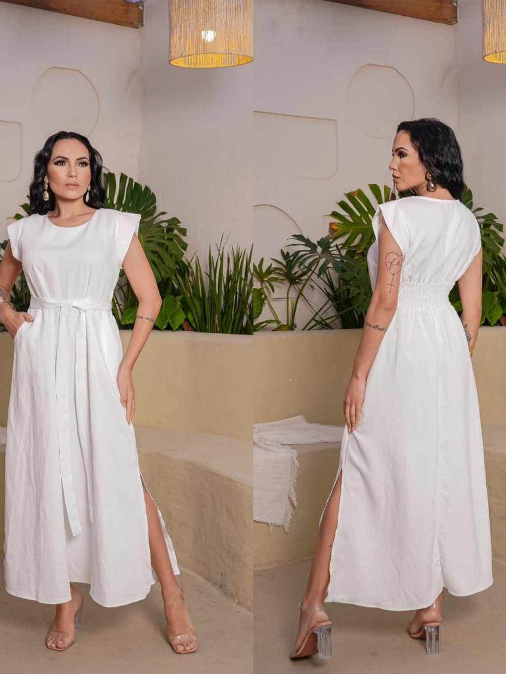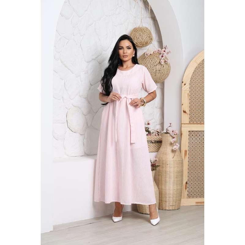 Vestido Longo Feminino Moda Evangélica Elegante com Faixa na Cintura Modelagem Solta