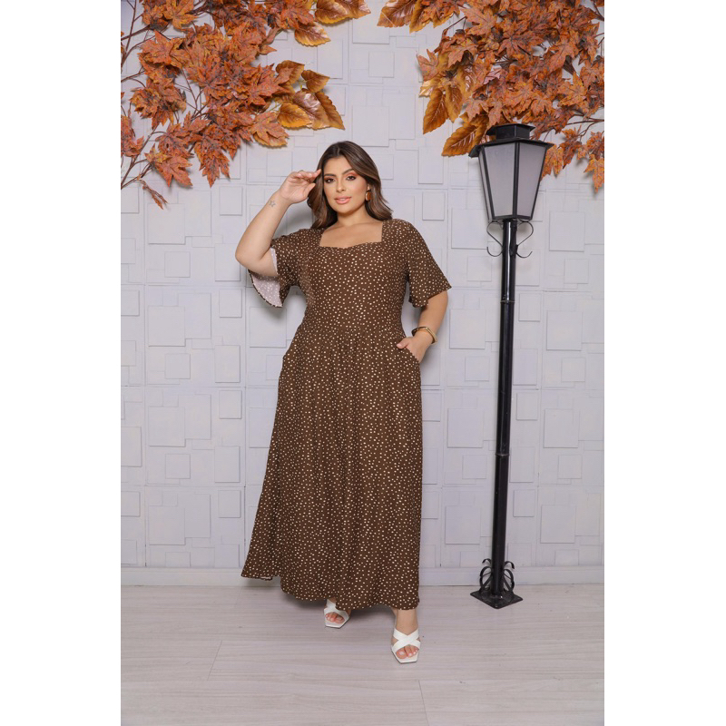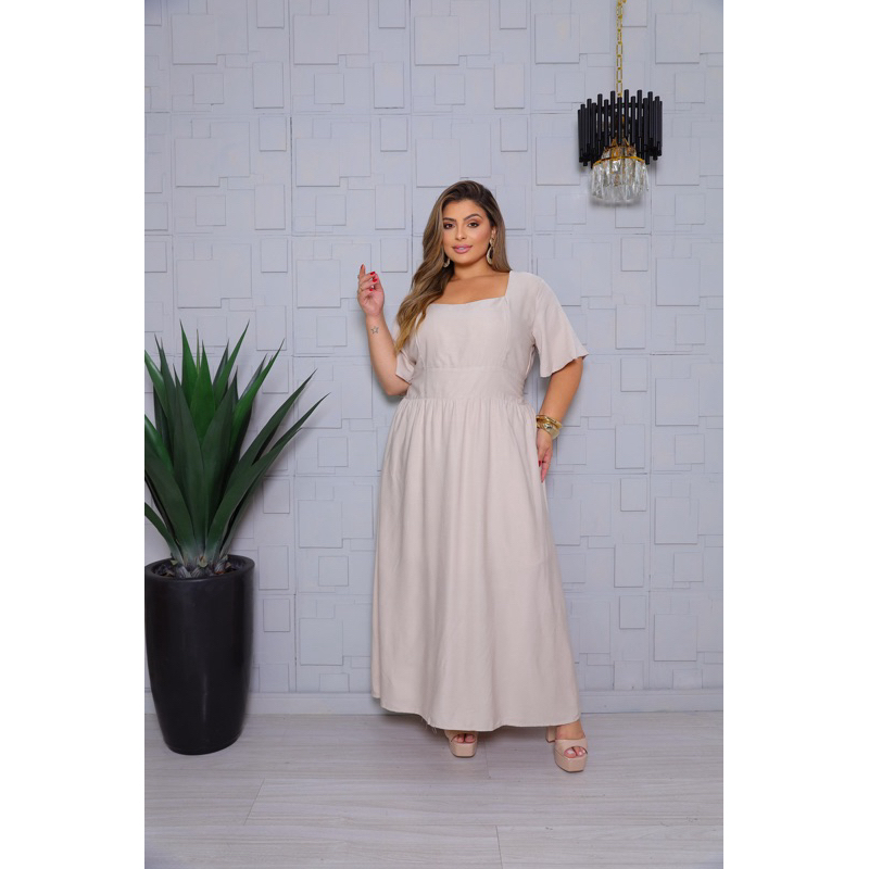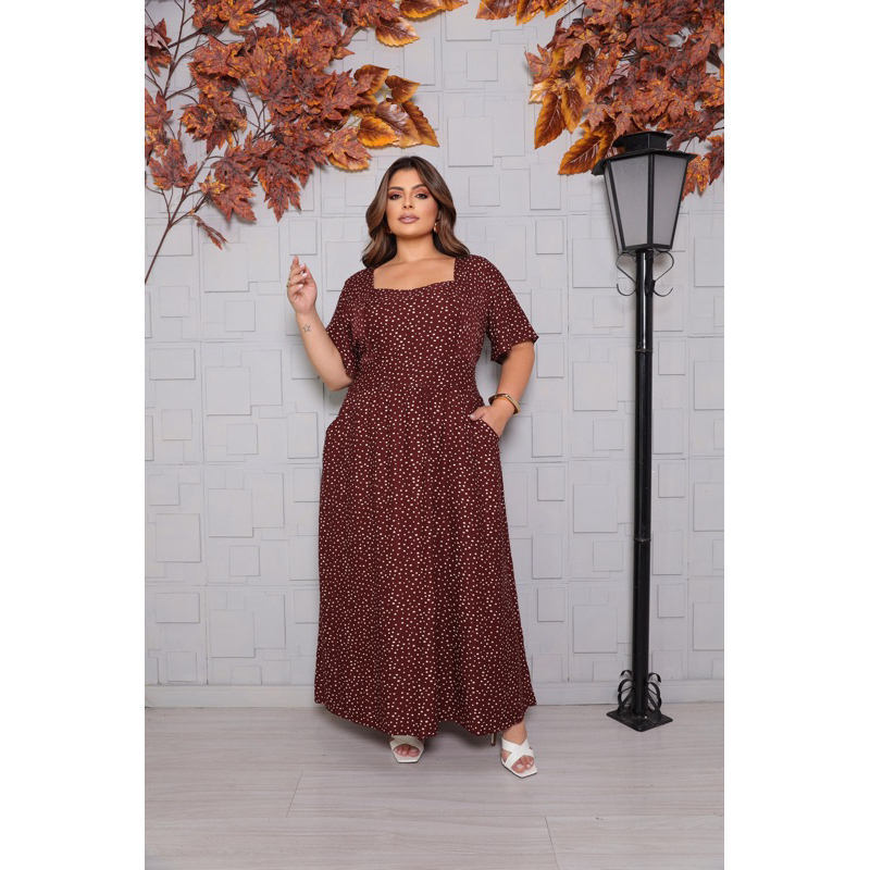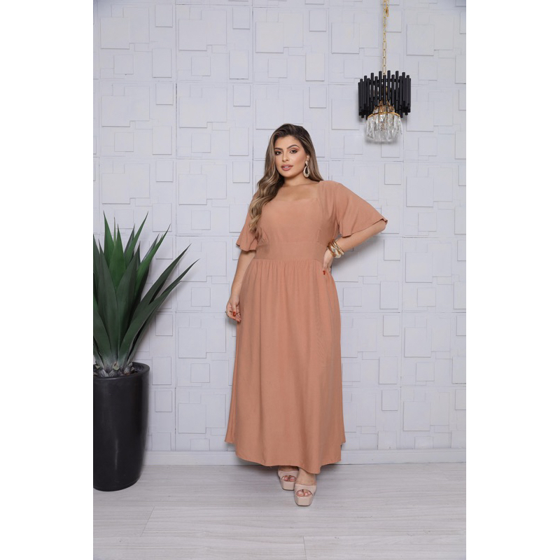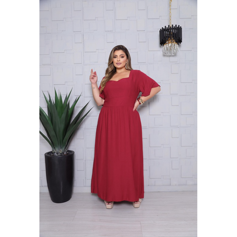 Vestido Longo Feminino Plus Size Moda Evangélica Elegante Manga Curta Cintura Marcada Inverno 2026 Vestido Midi Maxi