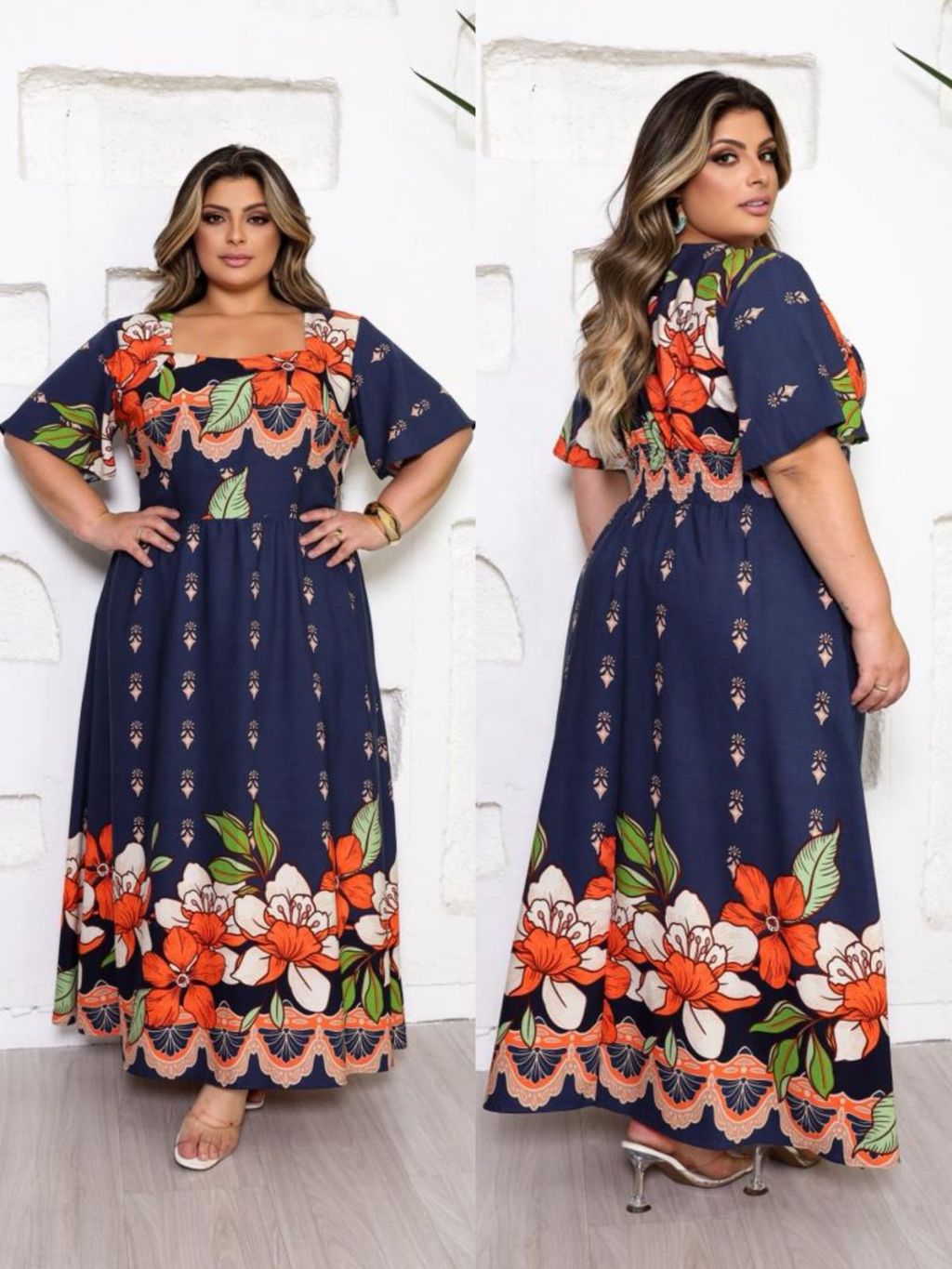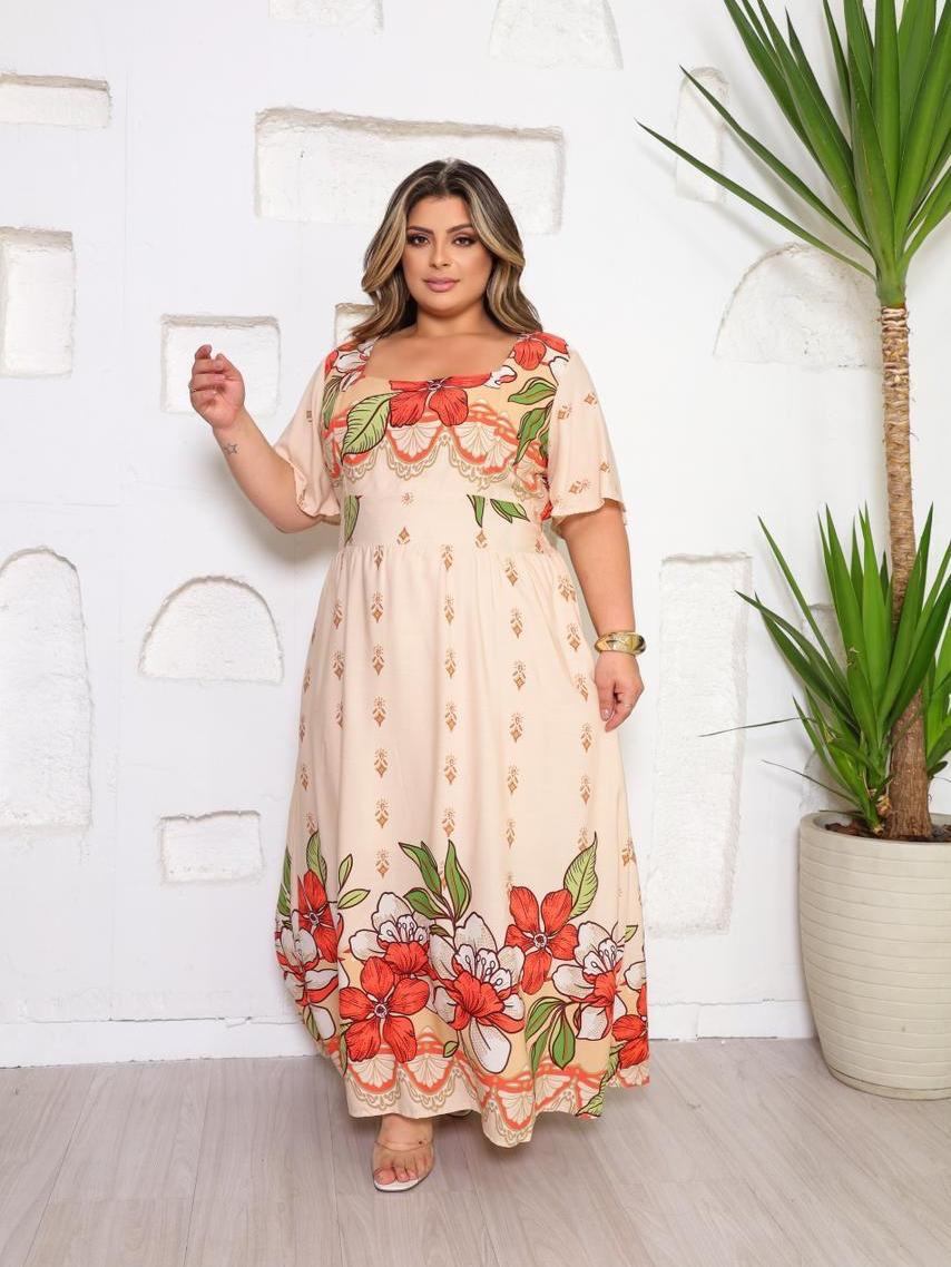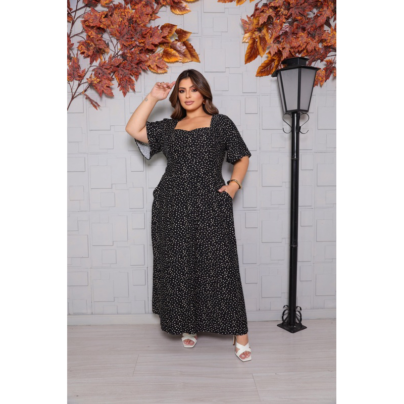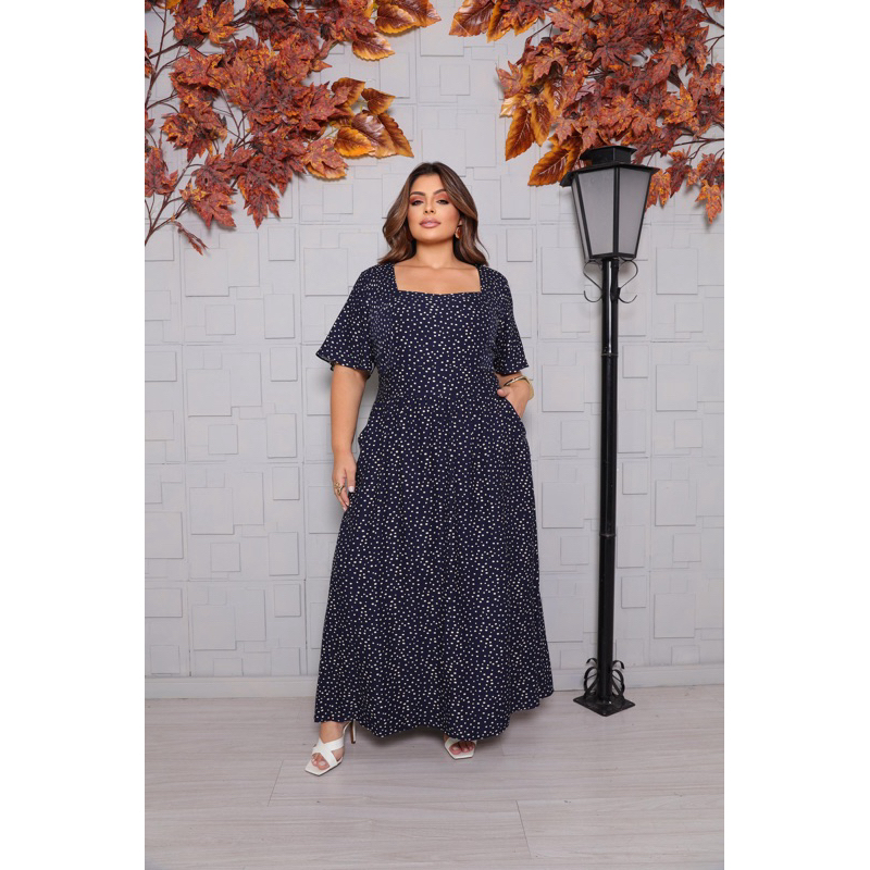 Vestido Longo Feminino Plus Size Moda Evangélica Elegante Manga Curta Cintura Marcada Inverno 2026 Vestido Midi Maxi