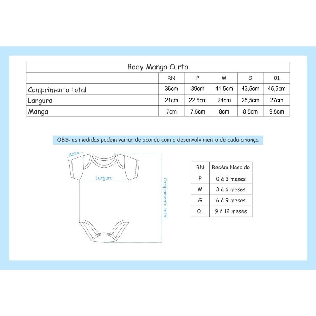 Body Bebê manga Curta em Algodão
