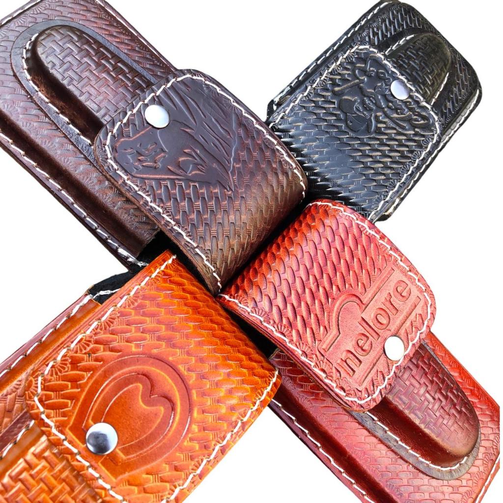 Bainha Porta Celular Couro com Canivete Madeira Artesanal Canguru Legítima